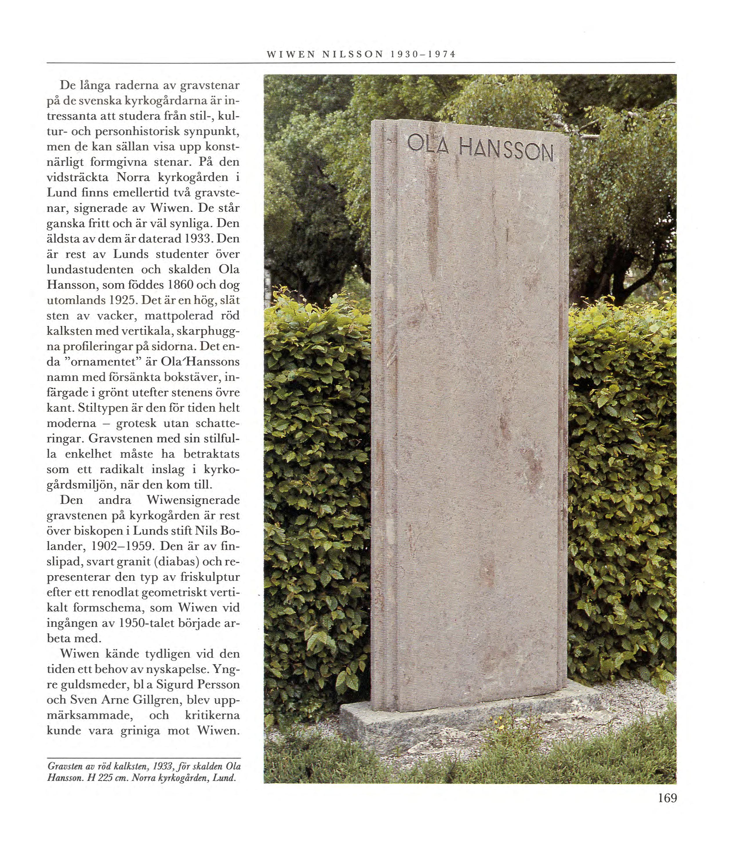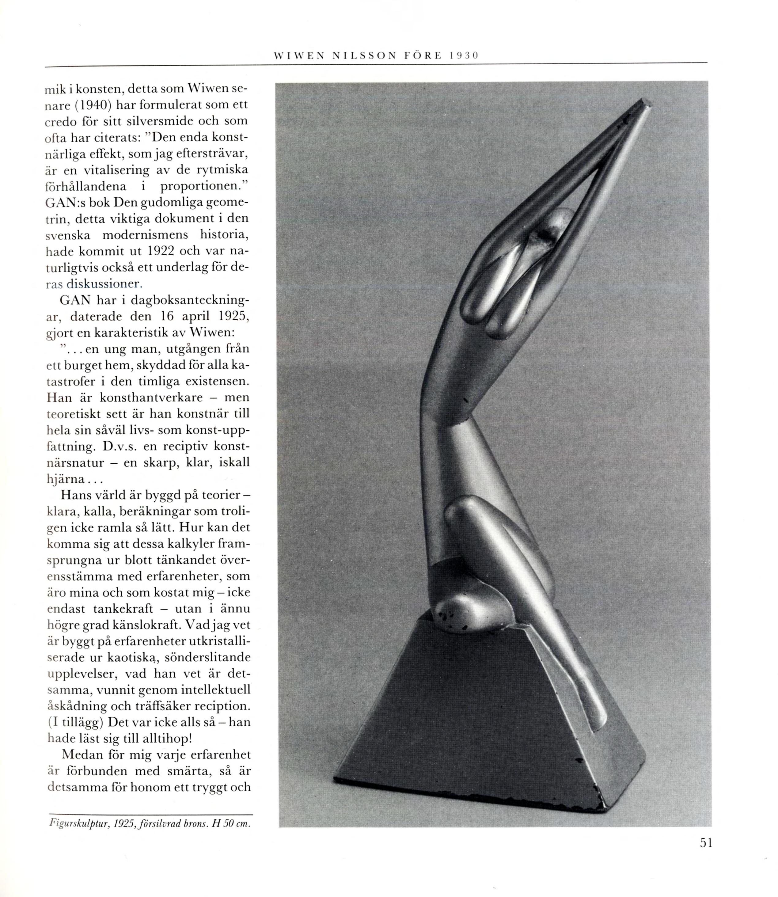 WIWEN NILSSONin the forms and at the same time the monumentality , the peace, the calm!" He also formulated his artistic beliefs, "The only artistic effect which I strive to achieve is to make the rhythmic relationships inherent in the proportions come to life ."