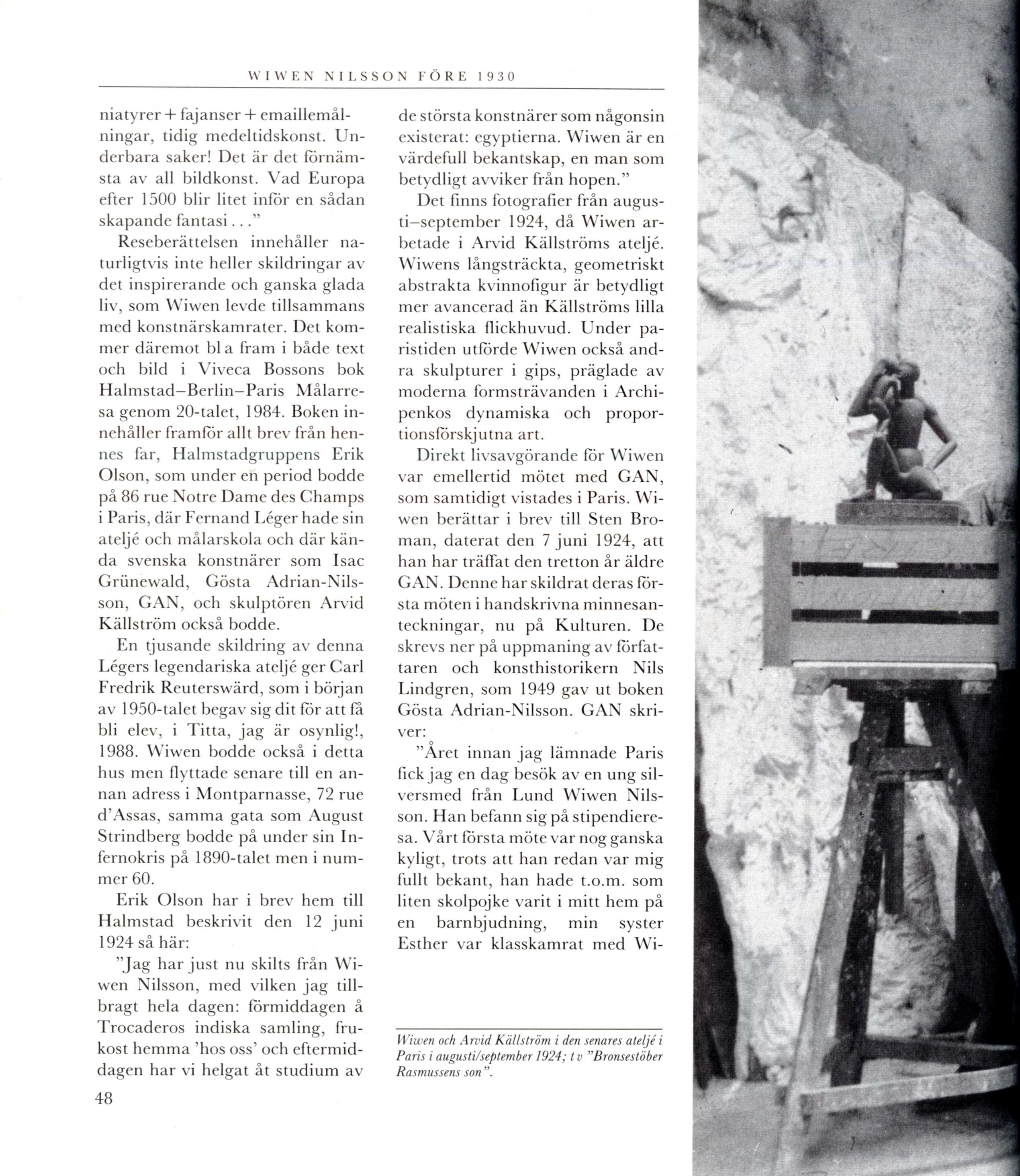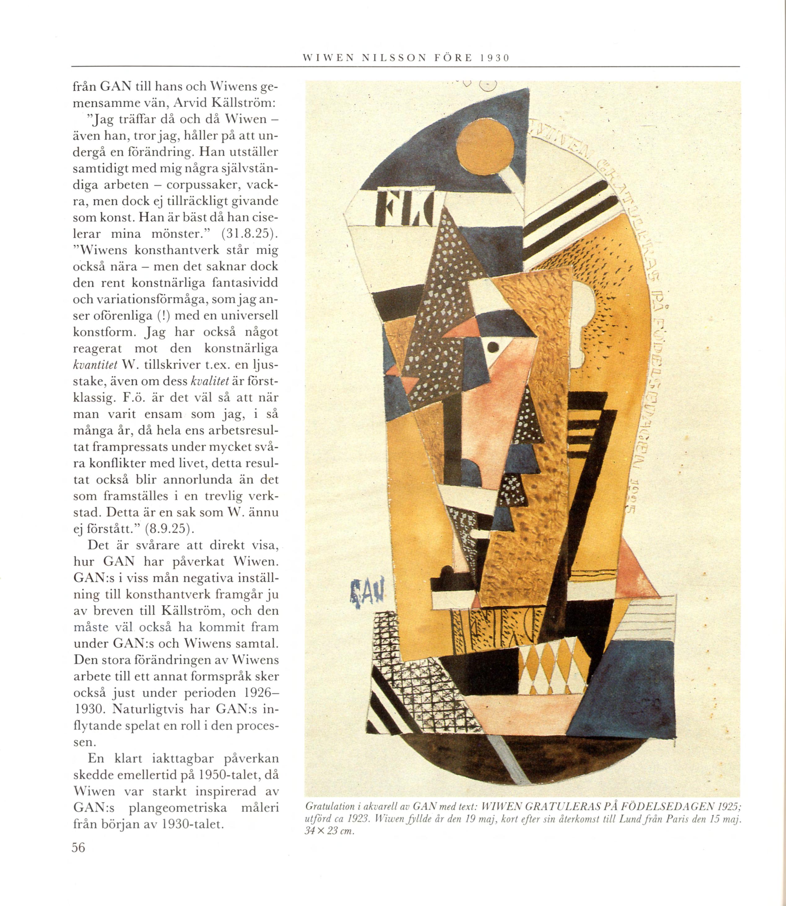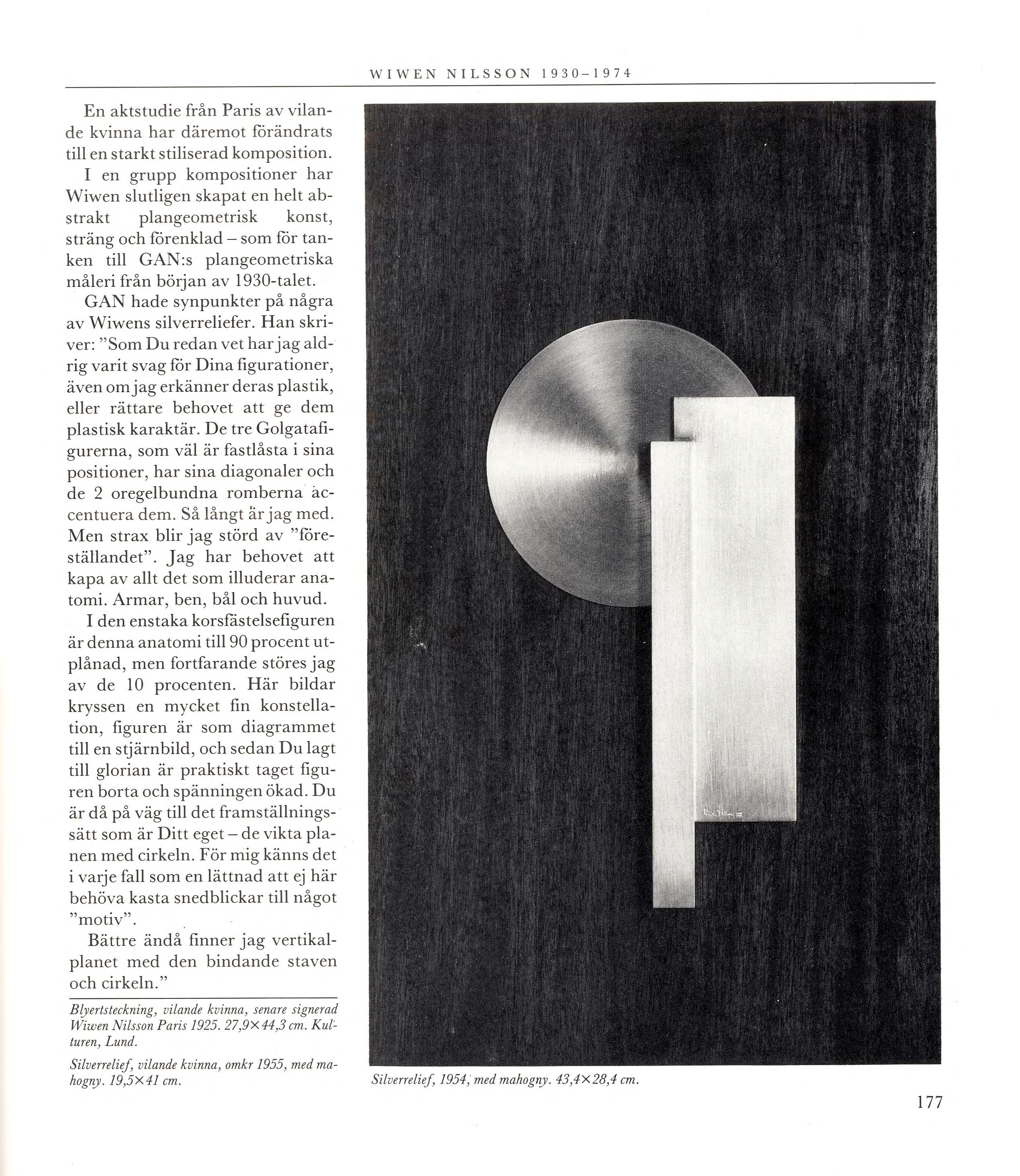Wiw e n Nilsson och GAN. Om utställningen p å Malm ö mu se um. Malmö Mus eum . Malmö. 1955. (In ledning av Nils Gösta Sandblad. )