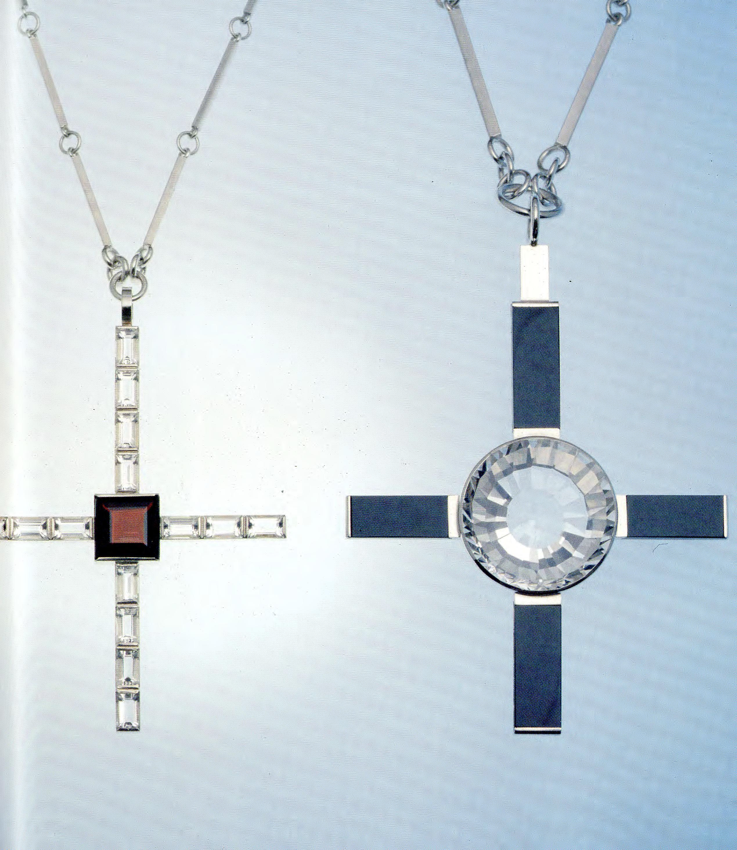 Pendants with large rock crystals became popular. lnterestingly enough, Nilsson introduced the cross as a fashion in jewelry. Earlier a cross had been a normal confirmation present for a young girl or acted as a symbol of the wearer's Christian belief.