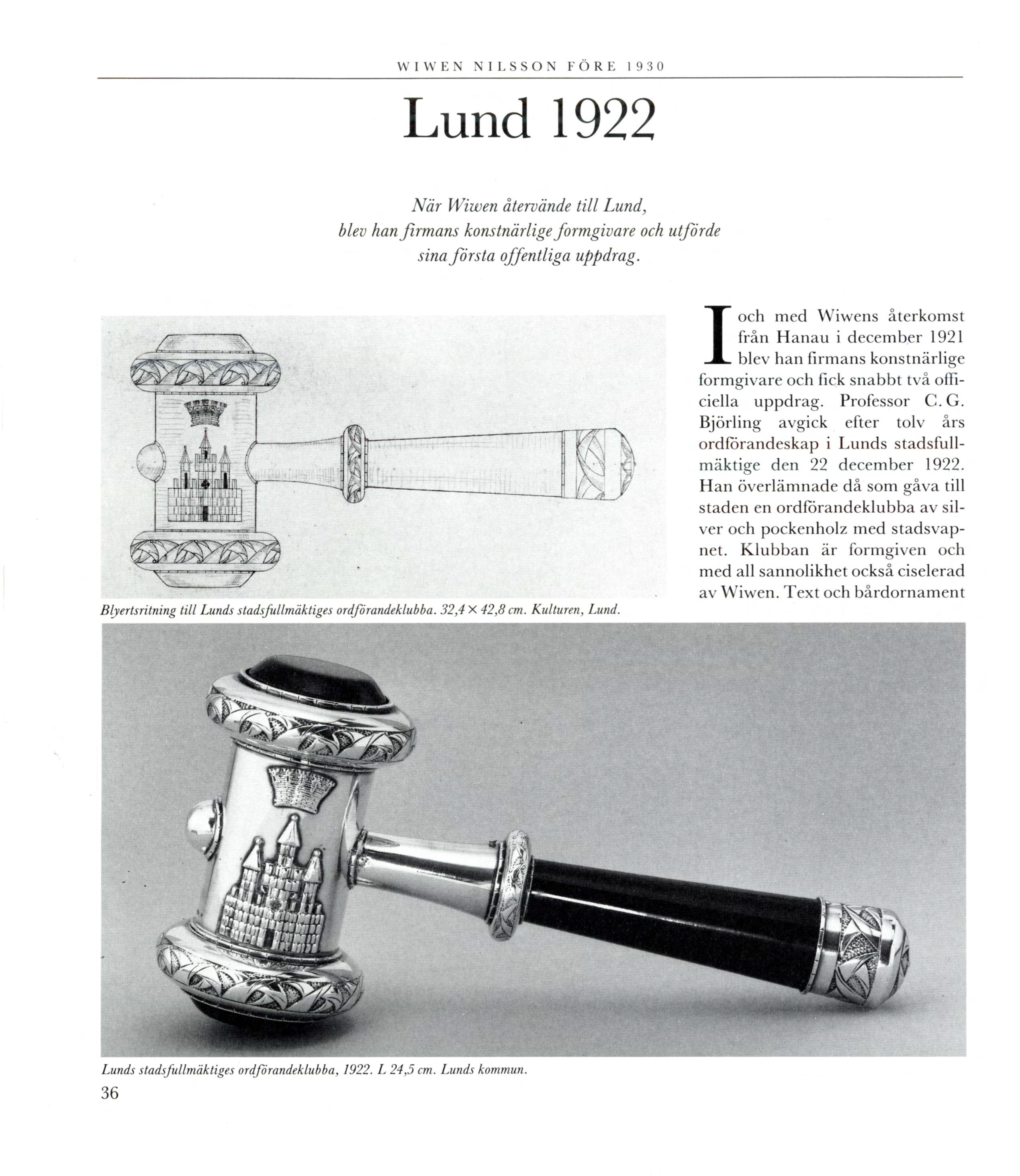 Wiwen (pronounced "Veeven ") Nilsson's workshop was lo cated in Lund, Sweden, an old university town founded in the 990 ' s A.D. The tradition he followed can be traced a lmost ·directly back to Erik Holmberg, master goldsmith in 1774.