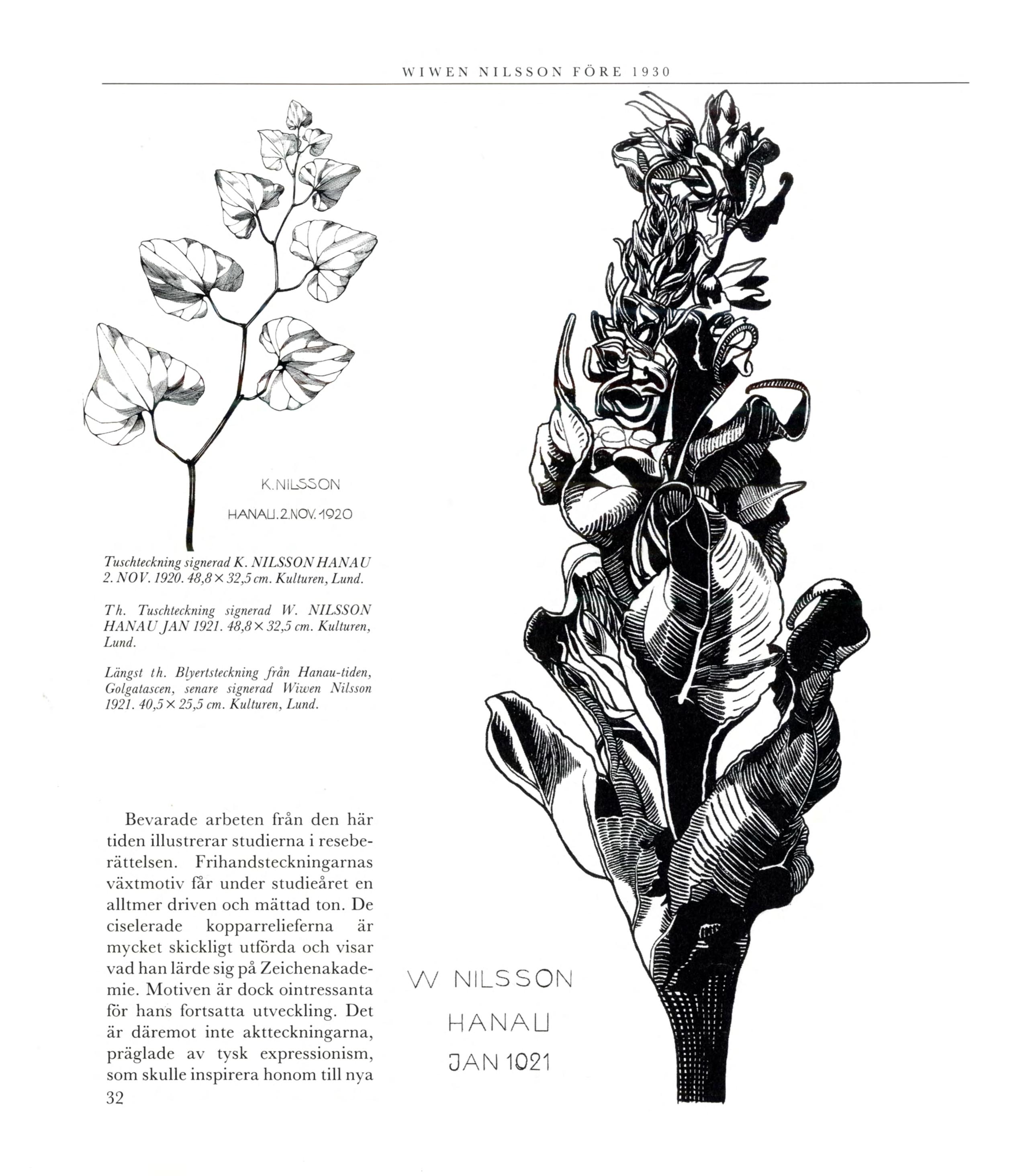 Nilsson wanted to continue his training . In October 1920 he returned to the Zeichenakademie in Hanau and stayed there almost a year. According to his trave! notes , he not on ly improved his technica l