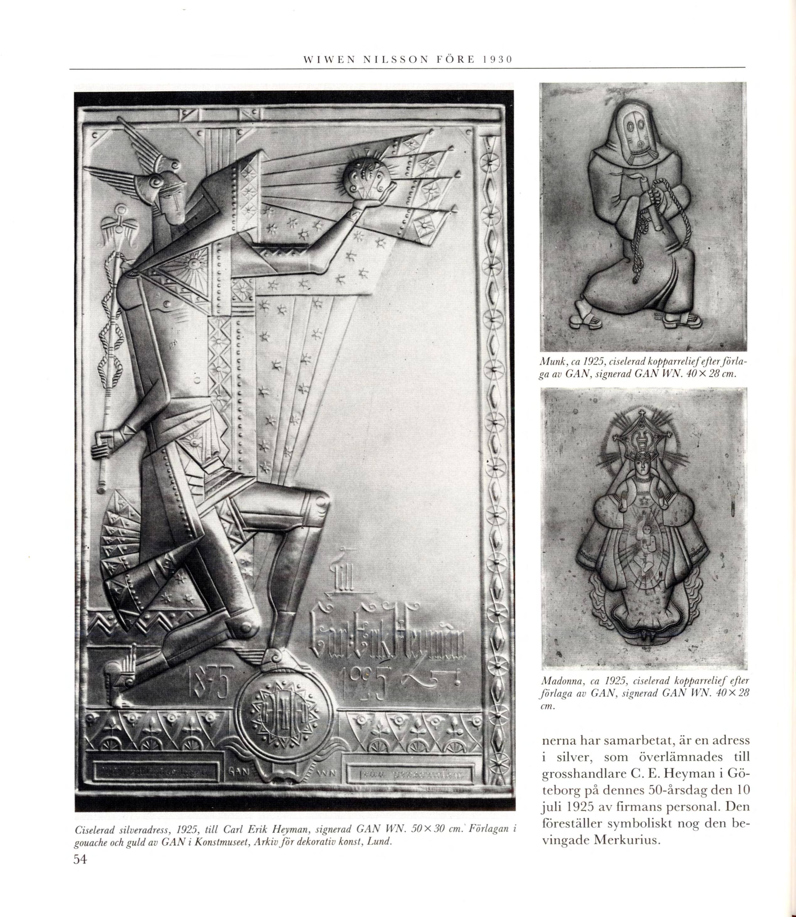 Based on models in "Gothicizing" cubism by GAN, Wiwen Nilsson chased the copper covers of a work on Swedish folk songs at Georg Jensen ' s studio in Paris in 1925.