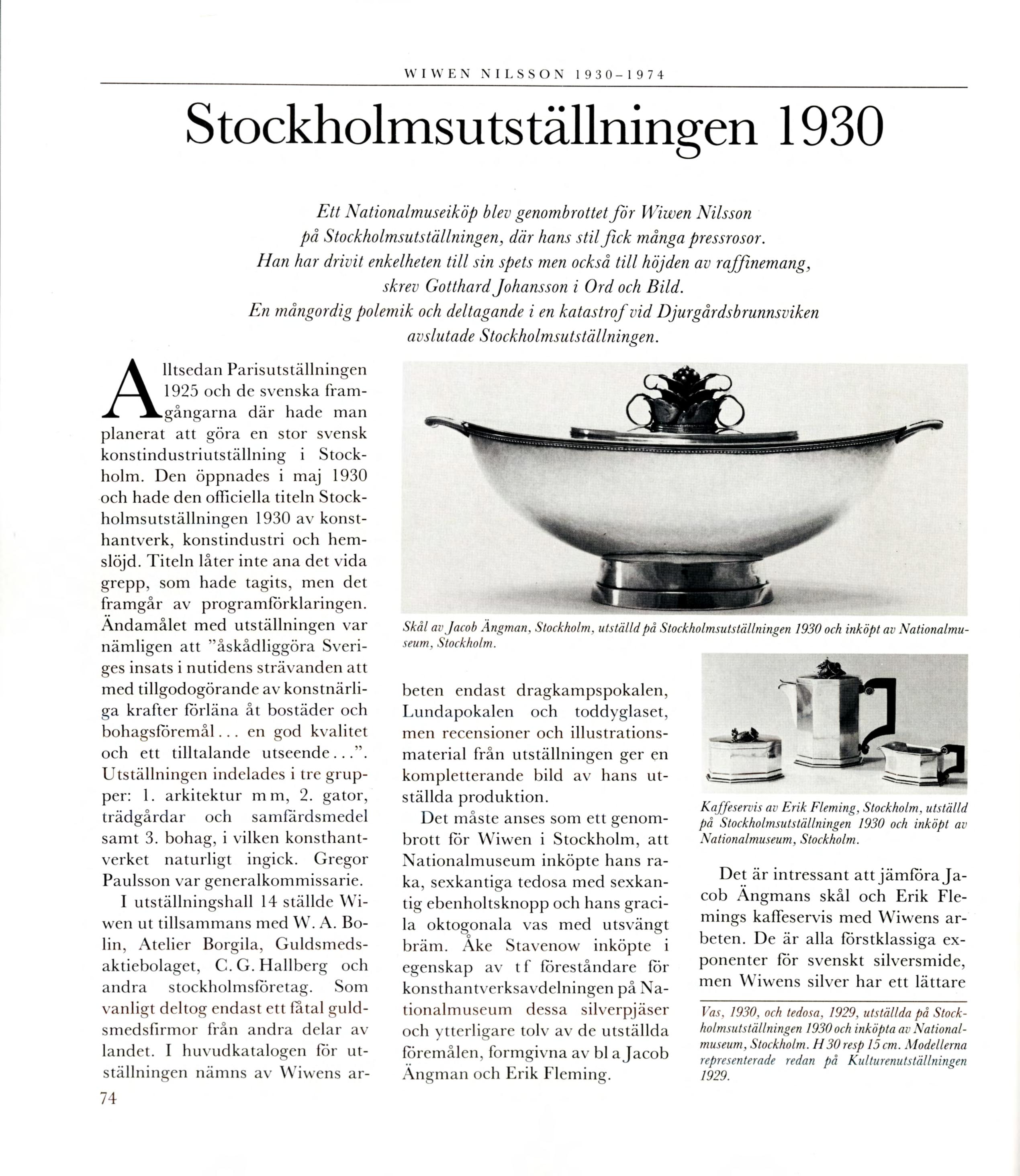 Stockholmsutställningen 1930 sid 74 1930 - talet och framåt sid 80 Profant silver sid 82