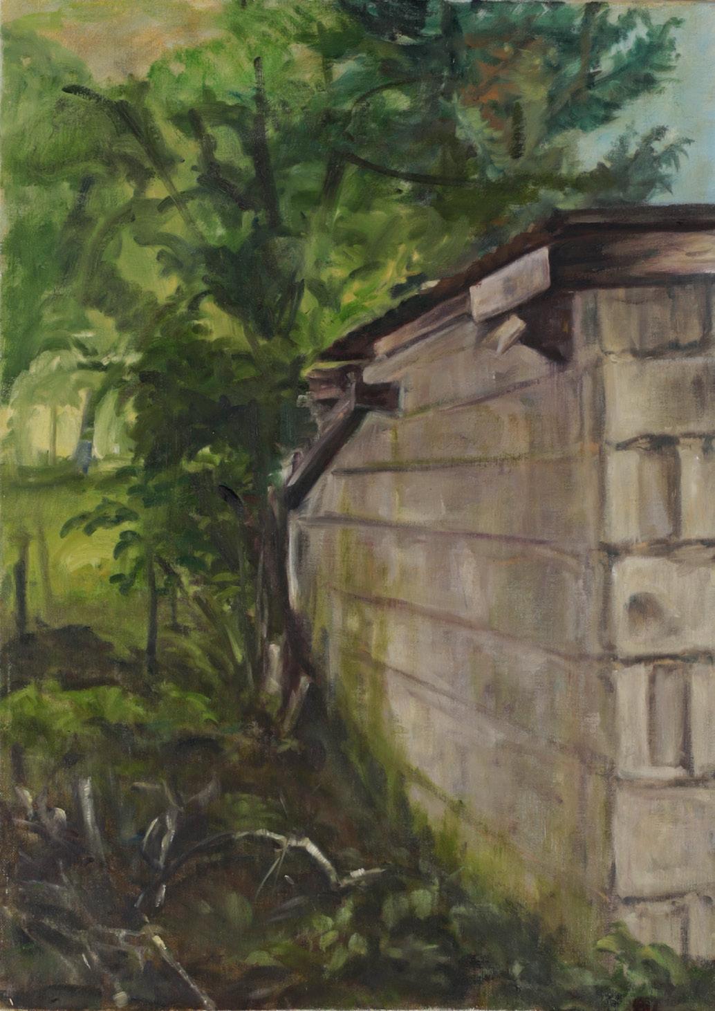 Karl Willems | Am Schuppen | 2022 | Öl auf Leinwand | 70 x 50 cm