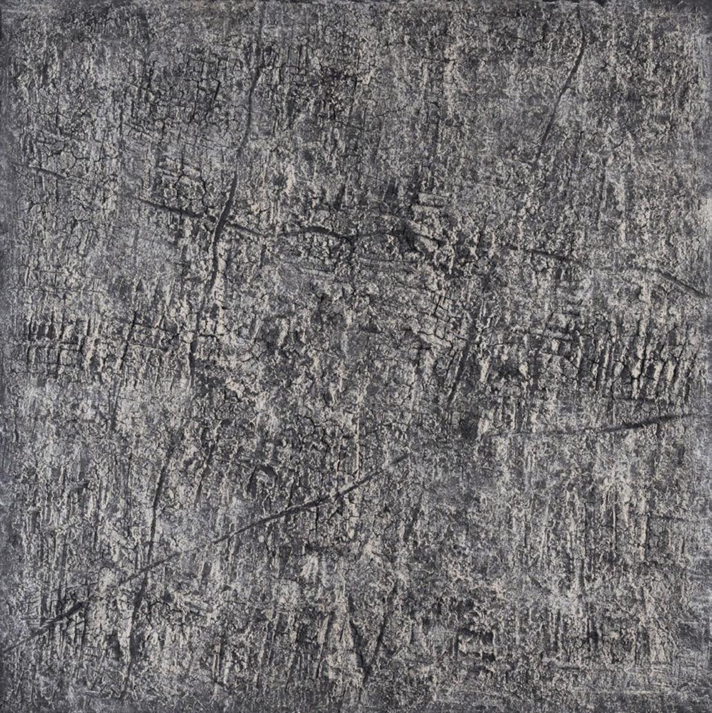 Aloys Rump | San-Andreas-Verwerfung IX | 2023 | Schiefermehl, Marmorstaub auf Leinen | 150 x 150 cm