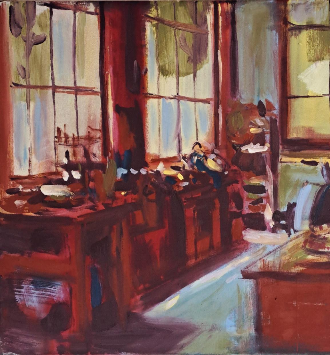 Andreas Bruchhäuser | Fensterblick – Gewitterregen | 2024 | Pastell | 70 x 70 cm gerahmt