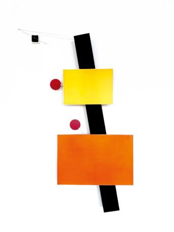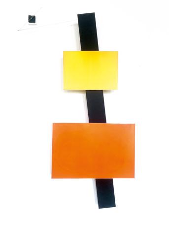 Ulrich Westerfrölke | time graphic „dicke Berta“ | 2024 | kinetisches Objekt – 3 Quartzuhrwerke, Alublech, lackierte Hartschaumplatten | 165 x 90 x 9 cm