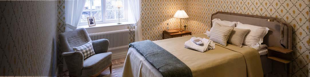 Vilstugan är möblerad med rustika trämöbler, bänkar, bord och sängar samt en öppen eldstad.