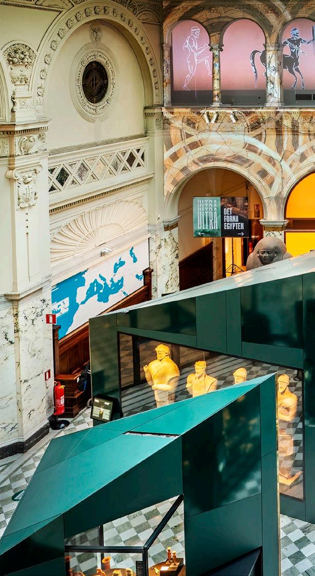 ÄGrekland, Rom, Cypern, Egypten och Mellanöstern är viktigast för besökarna påverkar museibyggnaden förstås helhetsintrycket. För Medelhavsmuseet gäller det i hög grad, byggnaden både samspelar med föremålen och är en sevärdhet i sig. – Många söker sig till museet för byggnadens skull. Det är ett fantastiskt hus och en centralt belägen oas, säger Sofia Häggman, museets egyptolog och intendent med ansvar för södra och östra Medelhavet.