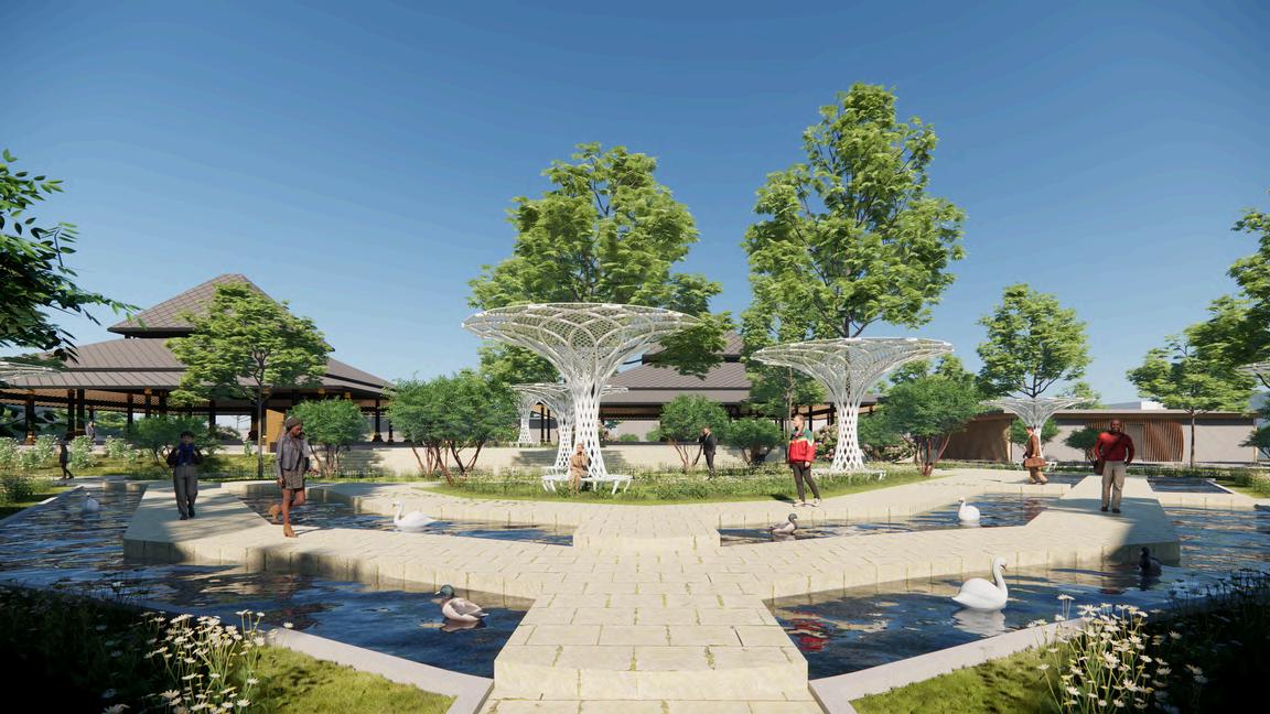 IncorporatingJavanesearchitecturalforms in the art studio is an implementation of a contextual concept, contrasted with the modern design of the Exhibition Hall The shape of the Exhibition Hall is inspired by the concept of infinity symbolizing