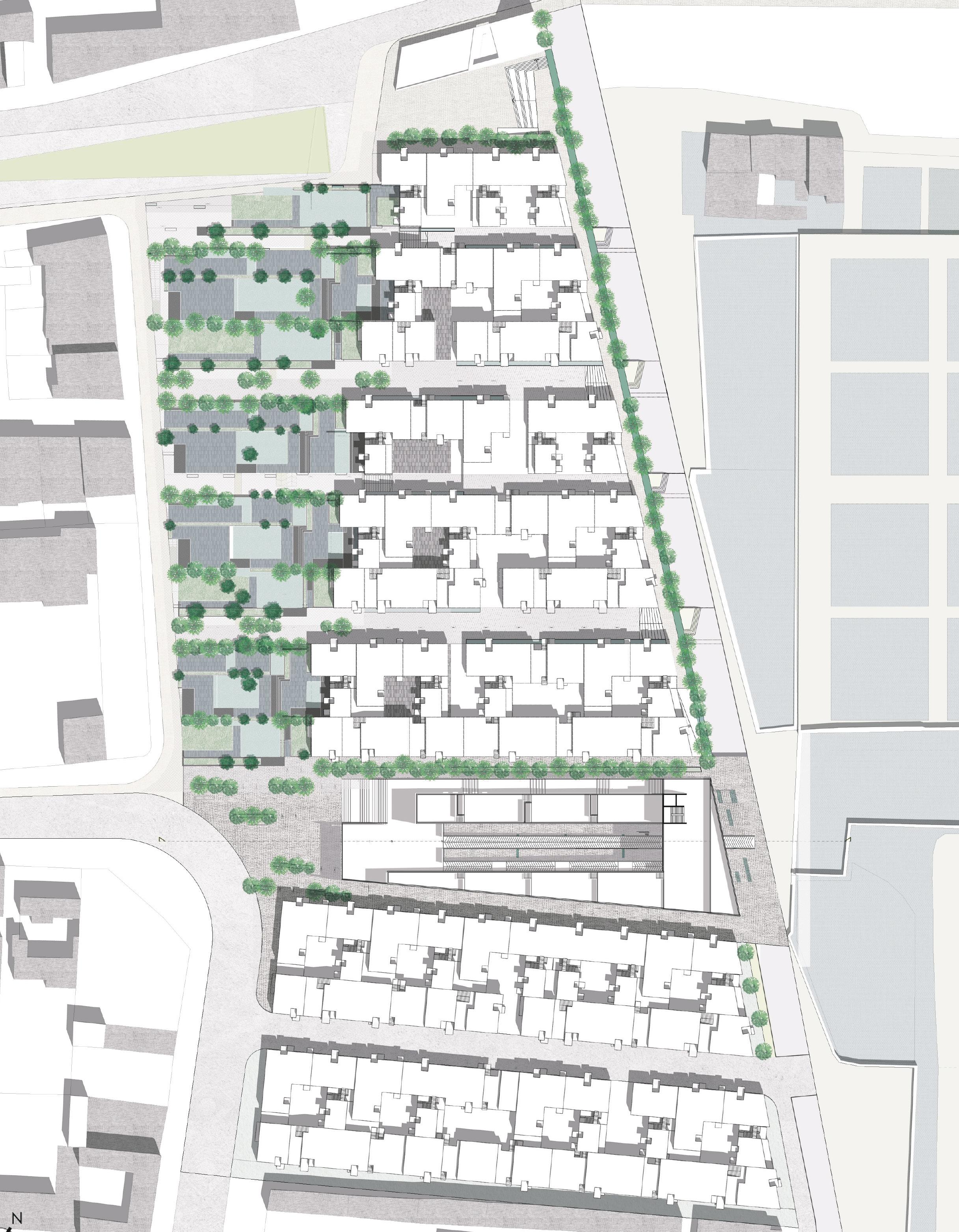 50 Cluster Plan 4 Floors <13M 3 Floors10M 2 Floors < 7M 1 Floor < 5M 1 Floor < 3M Courtyard Street Houses Cpurt Walls 2.5M Internal Route