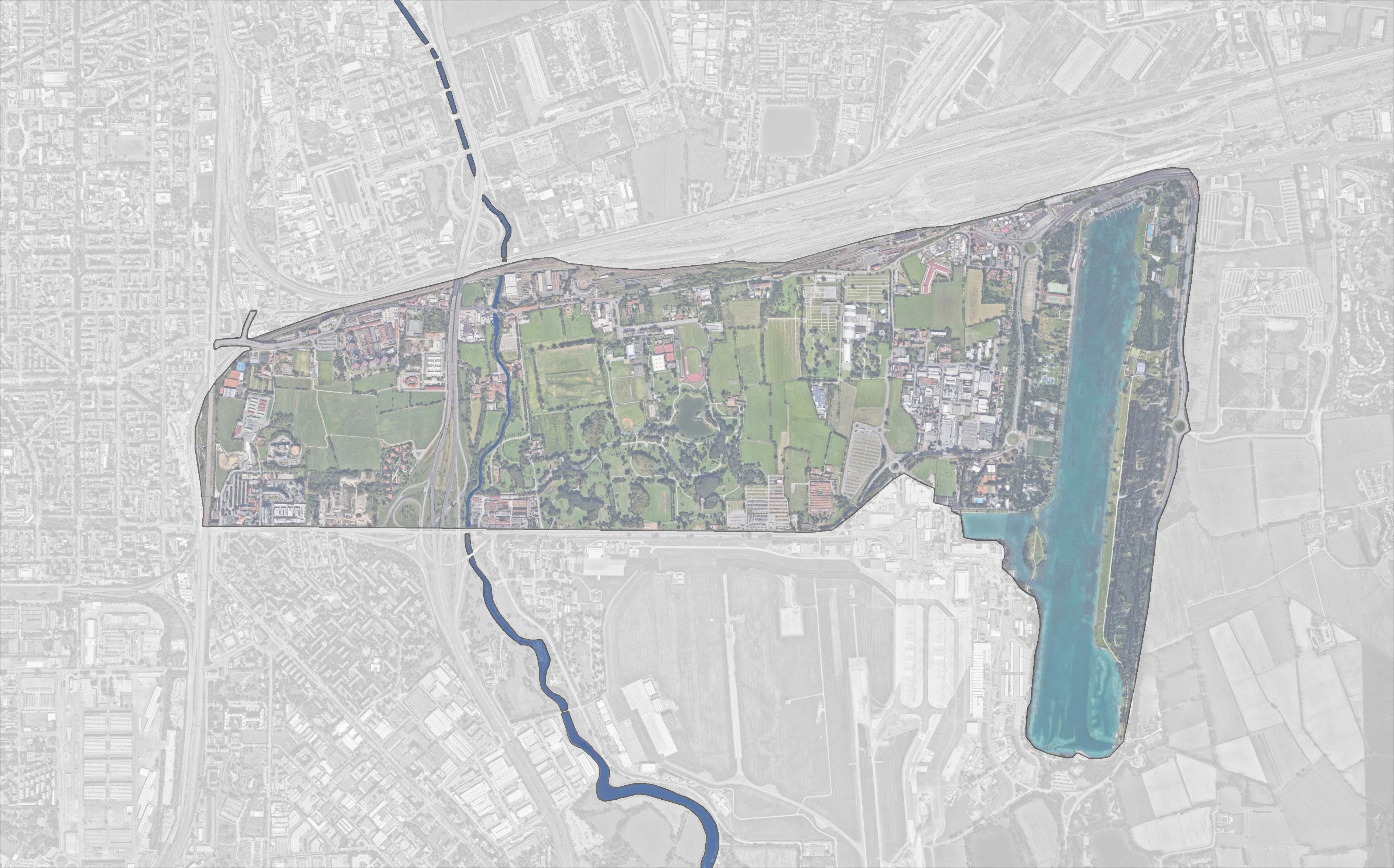 As seen on the map, the area of the proposed Grande Parco Forlanini extends from the eastern side of Milan to the Idroscalo, in the Segrate municipality. The site is a par t of the green belt surrounding Milan, and is also in the course of the Lambro River, which highlights its impor tance as a natural environment in the metropolitan area.