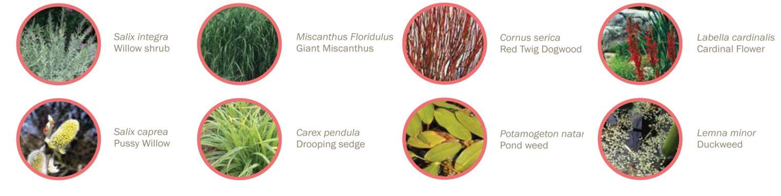 Zone 2: Plants can grow in 2” standing water and has mild water retention properties and bears flowers that bloom throughout the year.