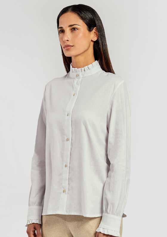 Clásica blusa, perfecta para la temporada, hecha en algodón pima para más comodidad. Una prenda imprescindible con un toque único de recogido en el cuello y en el puño de las mangas.