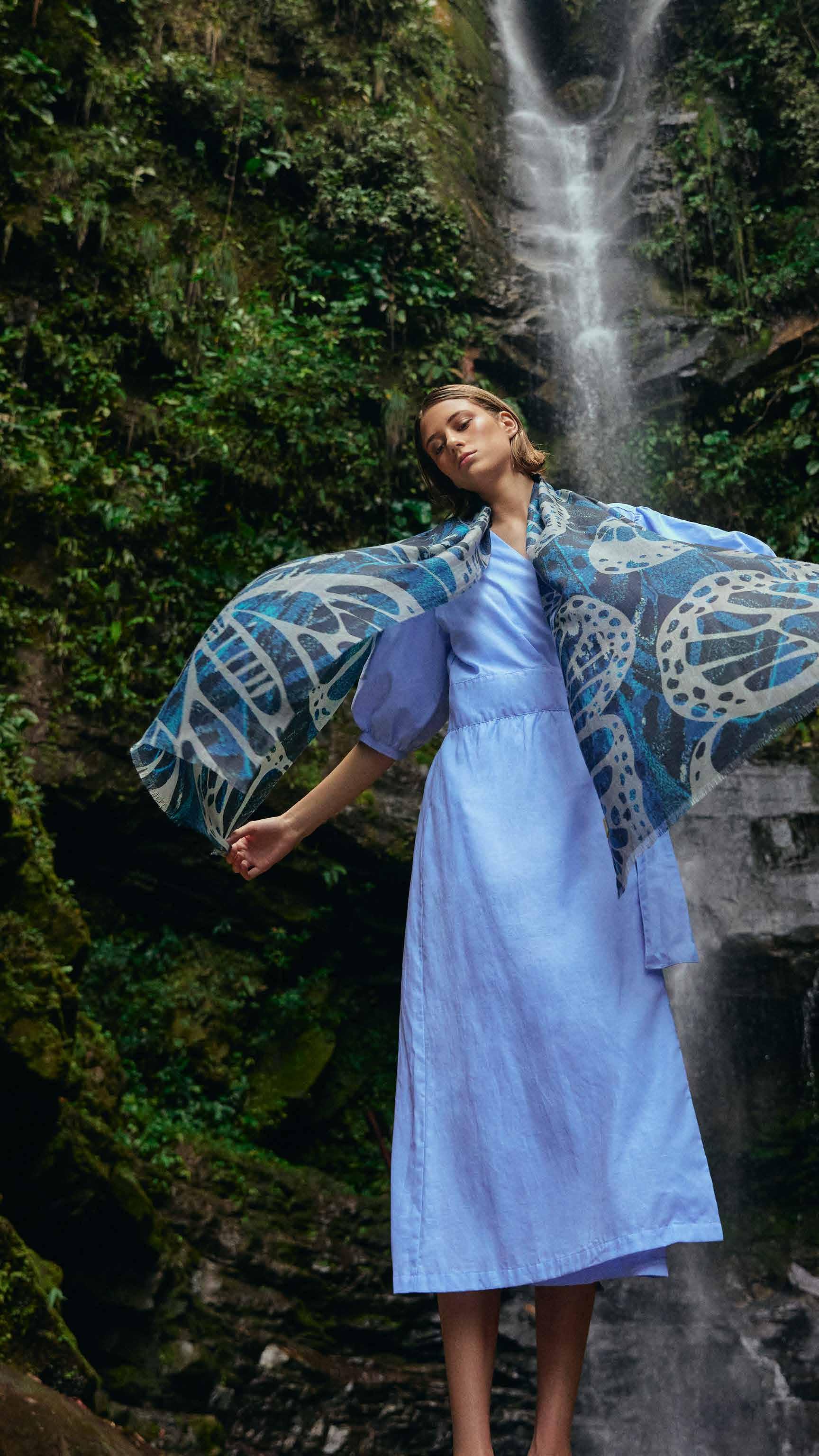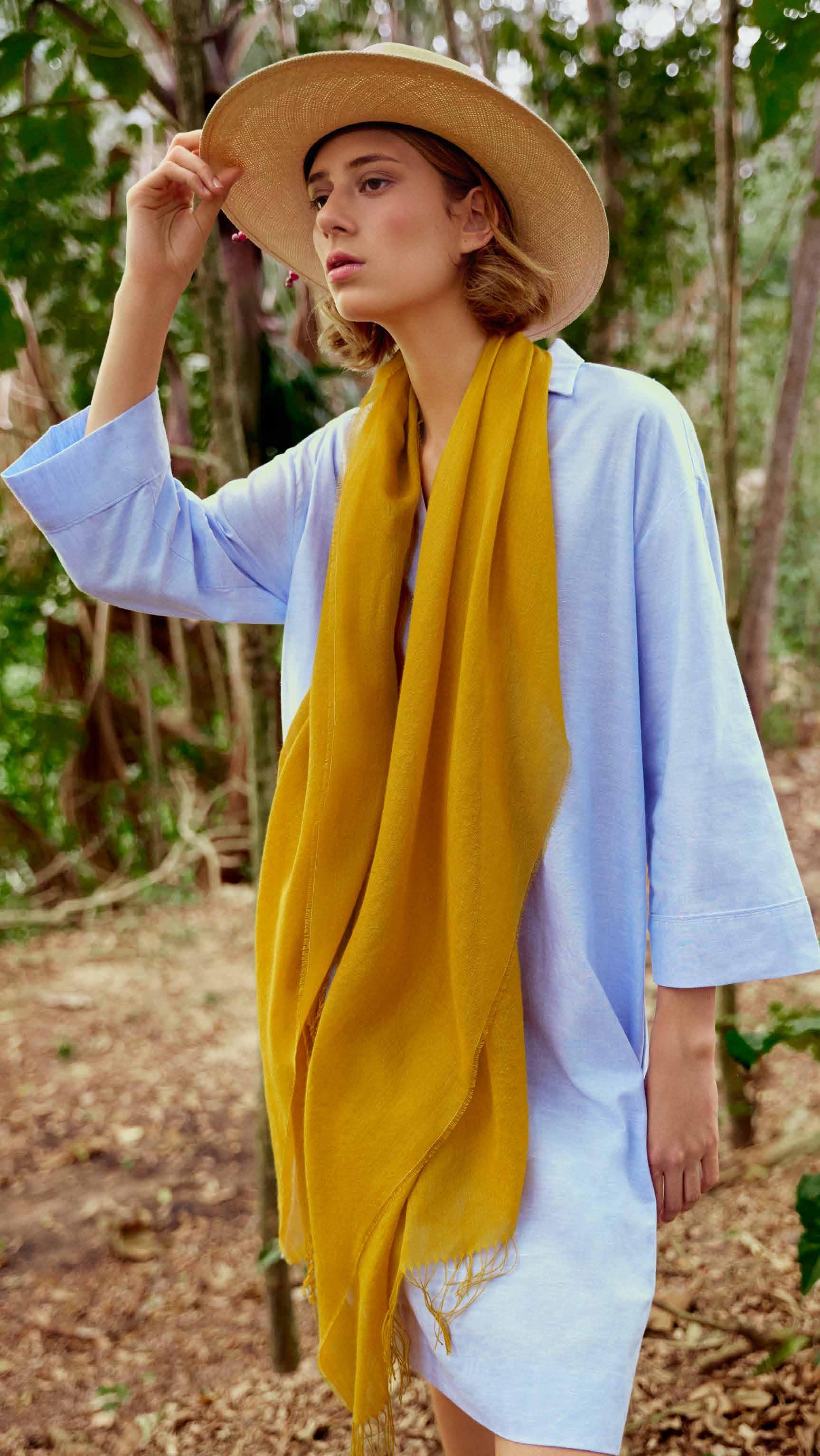 Vercorin Estola clásica y minimalista en color entero. Ideal para complementar cualquier look. S/ 299 70% baby alpaca 30% seda 200 x 70 cm Azul