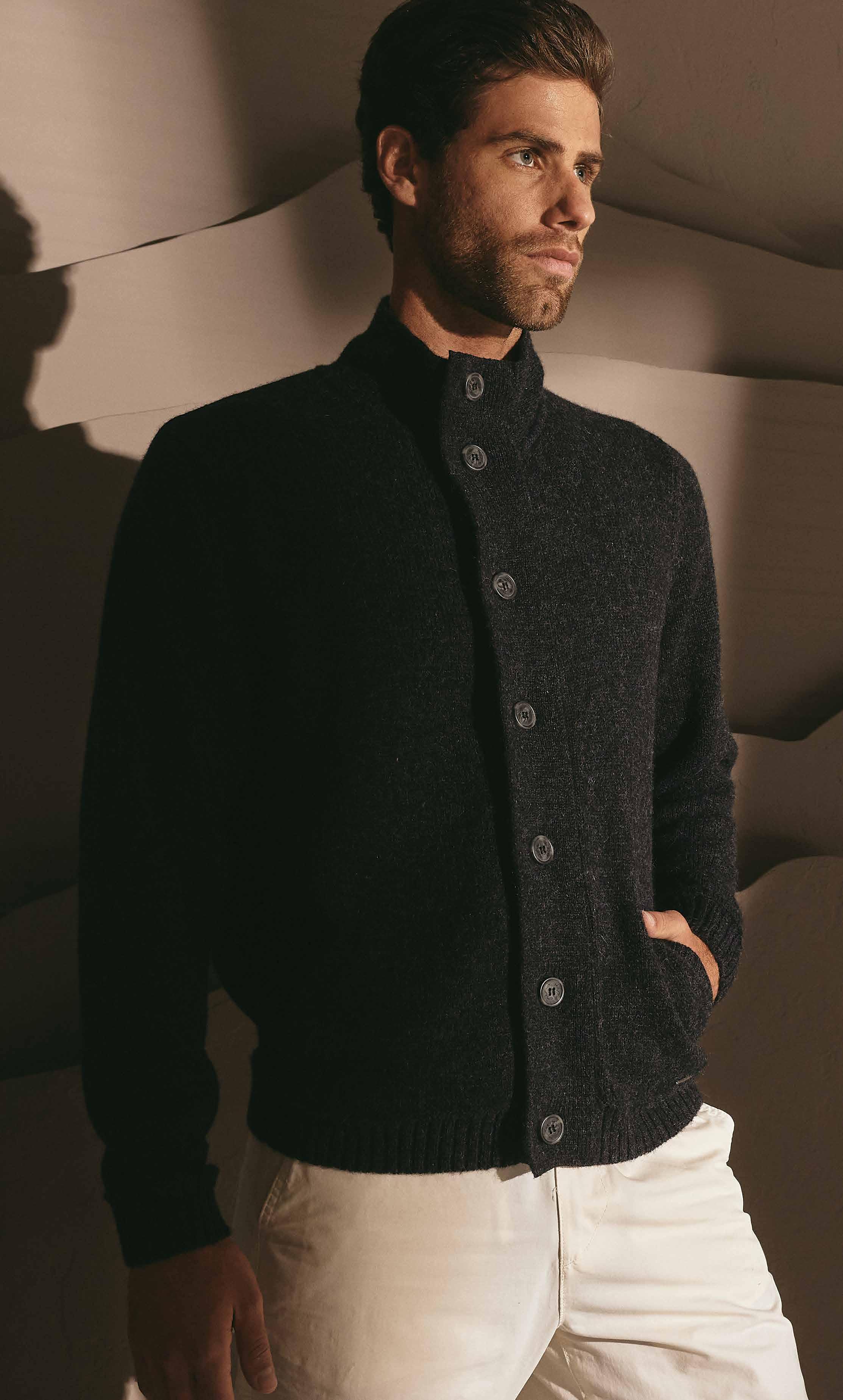 Elegante cárdigan hecho con finas fibras de baby alpaca en un sobrio tono, con botones centrales que permiten armar un look casual.