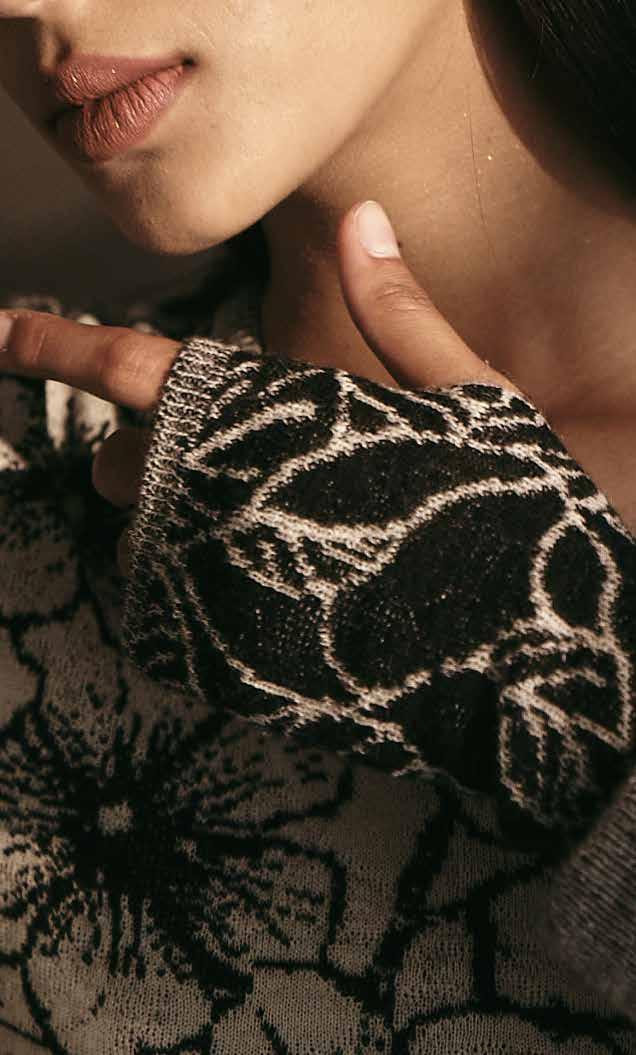 Suave, ligera y súper cálida. Esta capa confeccionada en 100% baby alpaca y con diseños de flores, es la prenda adecuada para los días más fríos de invierno. Su corte amplio permite llevarla incluso encima de sacos y abrigos. S/ 999 100% baby alpaca Talla única Wendolyn CAPA 11 +51 922 128 230 B y W