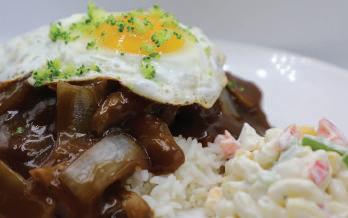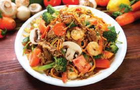 Yakisoba, Steamed Rice, Egg Rolls, Japanese Stir Fry Vegetables, Corn, and Fried Cabbage