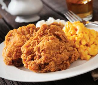 BBQ Chicken, Braised Spareribs, Southern Fried Catfish, Baked Mac & Cheese, Mashed Potatoes, Southern Style