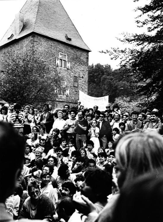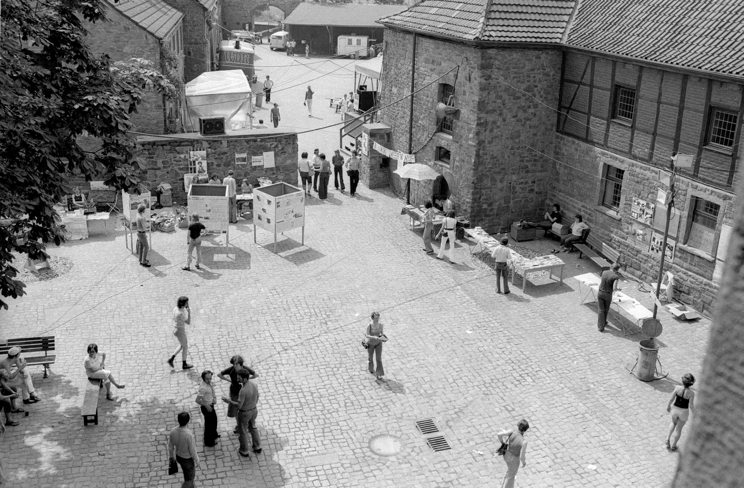 Das Musikfestival Kemnade International wurde 1974 vom Kunstmuseum Bochum und dem Sozialamt der Stadt ins Leben gerufen. Ein Festival, das nicht nur auf Musik und Kunst, Theater und Tanz setzte, sondern auch auf politische Bildung, Begegnung und neue Formen der Zusammenarbeit. Mit seinen insgesamt 20 Ausgaben wurde es zu einem der wichtigsten Ereignisse migrantischer Musikkulturen der Region, mit internationalen und lokalen Stars, Folkloregruppen, wissenschaftlichen Tagungen, gutem Essen und viel Bewegung. Das ursprüngliche Anliegen: in Kontakt kommen, gemeinsam ein Programm auf die Beine stellen, politischen Themen ein Forum geben und dabei nichtkommerziell Spaß haben. Dahinter verbarg sich eine neue Idee davon, was Museumsarbeit sein kann. In einem Konzepttext von 1975 beschreibt der damalige Kurator und Ideengeber des Festivals Michael Fehr, man wolle „dem Publikum zur Artikulation des eigenen Standpunktes verhelfen“ und durch basisdemokratische Organisation Angebote schaffen, die keine kunsthistorische Vorbildung oder „Unmengen an Zeit und Ruhe“ brauchen. Die 1970er Jahre waren geprägt durch Experimente für mögliche andere Zukünfte, etwa Versuche einer Demokratisierung der Kultur. Aber für Projekte wie Kemnade International, das die Zusammenarbeit zwischen städtischem Museum und migrantischen Selbstorganisationen ins Zentrum stellte, gab es keine Vorbilder. 1974, ein Jahr nach dem Anwerbestopp von Arbeitskräften aus dem Ausland, waren die Arbeits- und Lebensbedingungen der Arbeitsmigrant*innen meist schlecht, und es bestand wenig Kontakt zur deutschen Mehrheitsgesellschaft, geschweige denn ihrer Kulturinstitutionen. Gleichzeitig gab es in Bochum und den umliegenden Städten ein lebendiges migrantisches Kulturleben. Das Festival wollte auf diese Lücke reagieren, Menschen zueinander, die Verhältnisse zum Tanzen bringen – also langfristig eine gesellschaftliche Veränderung bewirken. Ohne viel Erfahrungen in dem Bereich handelte das Museum dabei „einzig geleitet von gutem Willen“, kommentiert ein Beitrag von WDR Prisma des Westens über die erste Ausgabe 1974. Ein guter Anfang, die Burg Kemnade war voll.