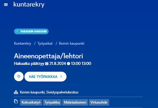 Tiesitkö, että voit tallentaa työpaikkailmoituksia suosikeiksi kuntarekry.fi -sivustolla?