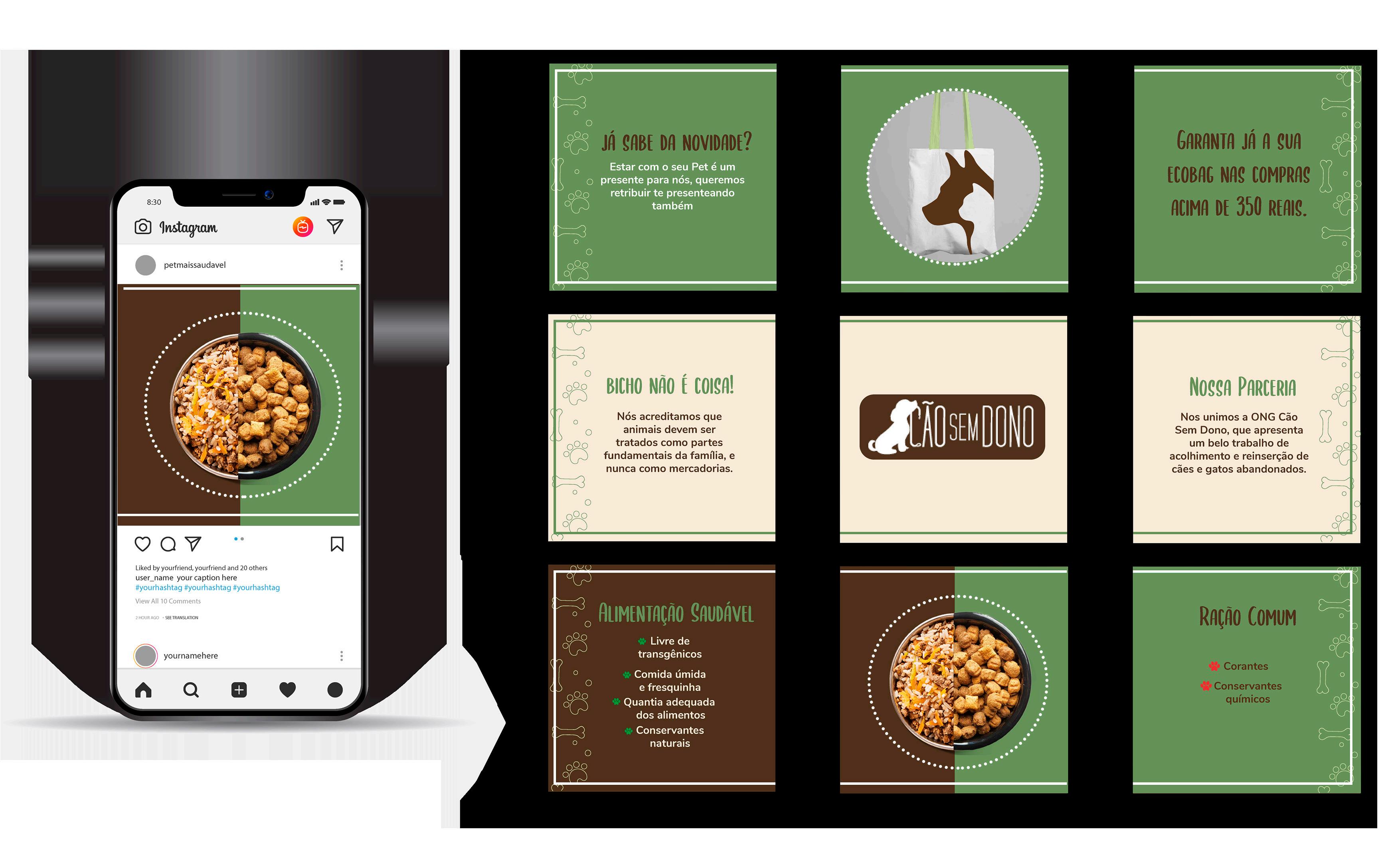 O Pet + Saudável é uma empresa de extremo potencial, mas com uma identidade que não conversa com o público de maneira tão clara. Com isso em mente, buscou-se criar uma marca que não fosse apenas visualmente agradável, mas que pudesse levar a empresa a um outro nível, transmitindo cuidado com a saúde dos animais. Esse conceito está representado em todas as peças que compõe a campanha desenvolvida, visando melhorar a divulgação do Pet Shop e consequentemente fidelizar os clientes atuais e conquistar os novos, principalmente em um cenário onde cães e gatos ganharam cada vez mais espaço nos corações e lares das famílias brasileiras.