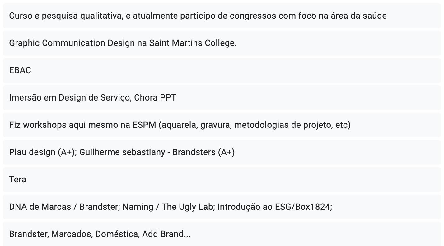 E sobre aquele carro chefe, vocês disseram que é aquele curso de branding aplicado, que é o principal curso da laje. Mas quais demandas vocês veem na comunidade e assim em geral assim que mais as pessoas procuram assim pode ser dentro ou fora de design. Qual demanda vocês mais veem uma procura, além de branding, que já é o curso principal de vocês.