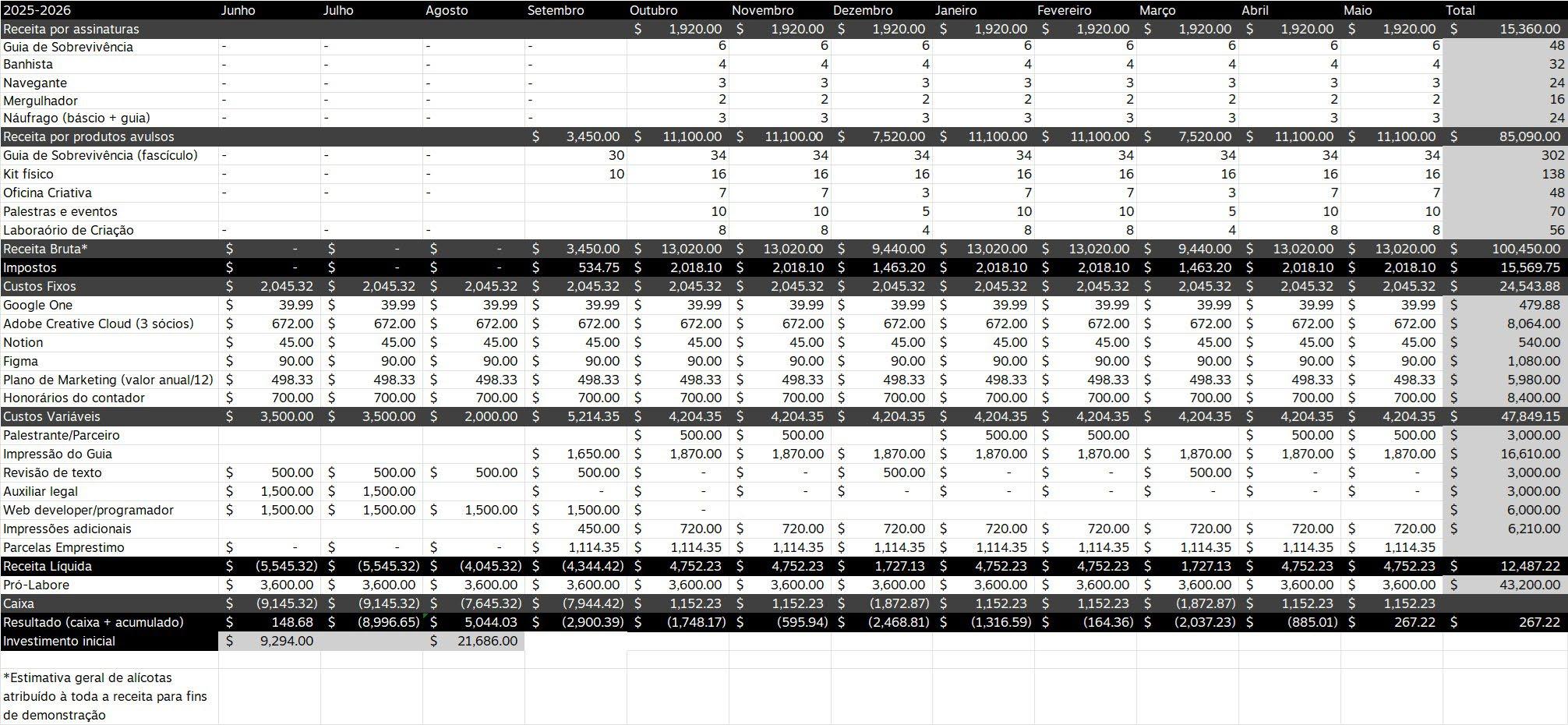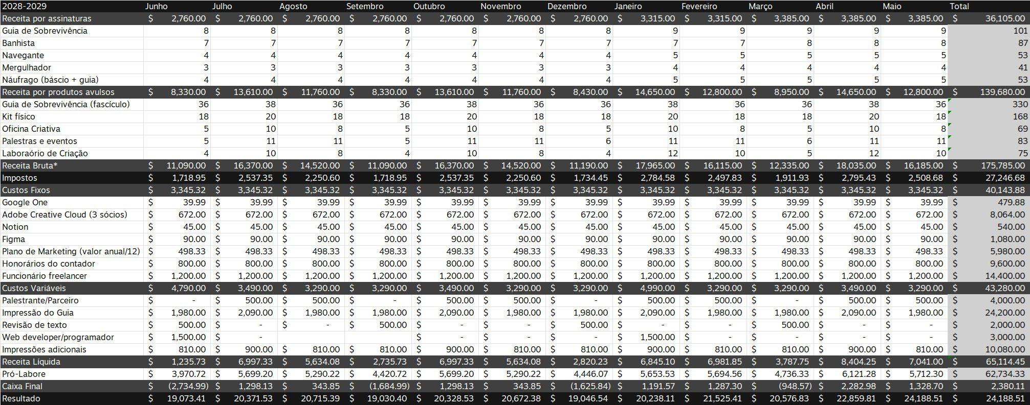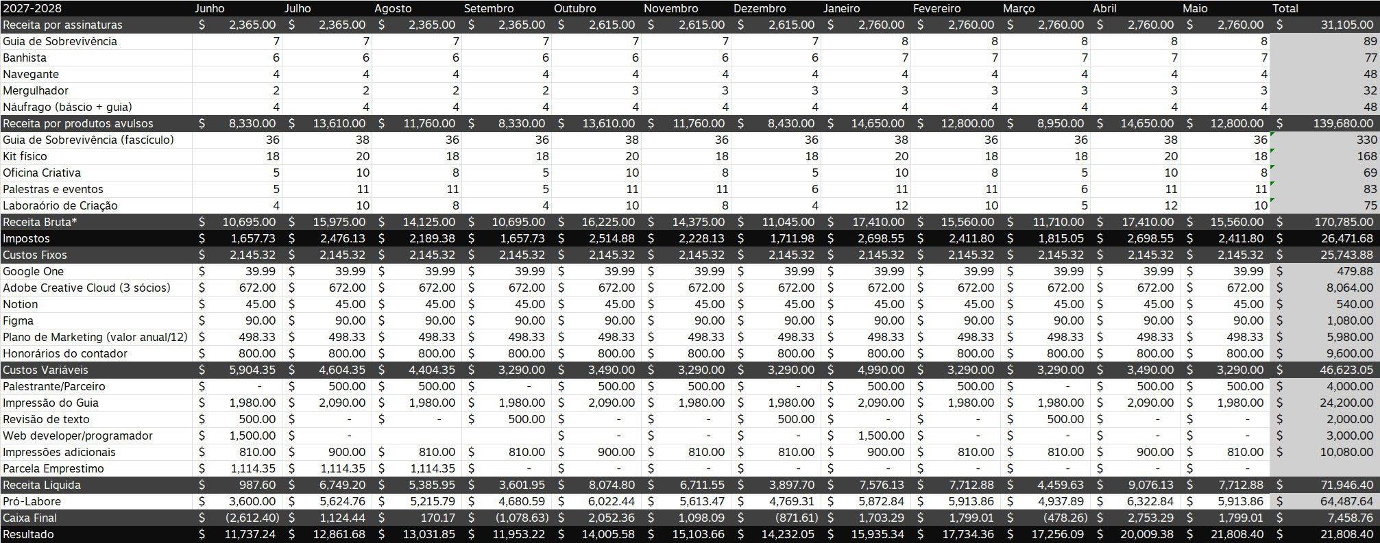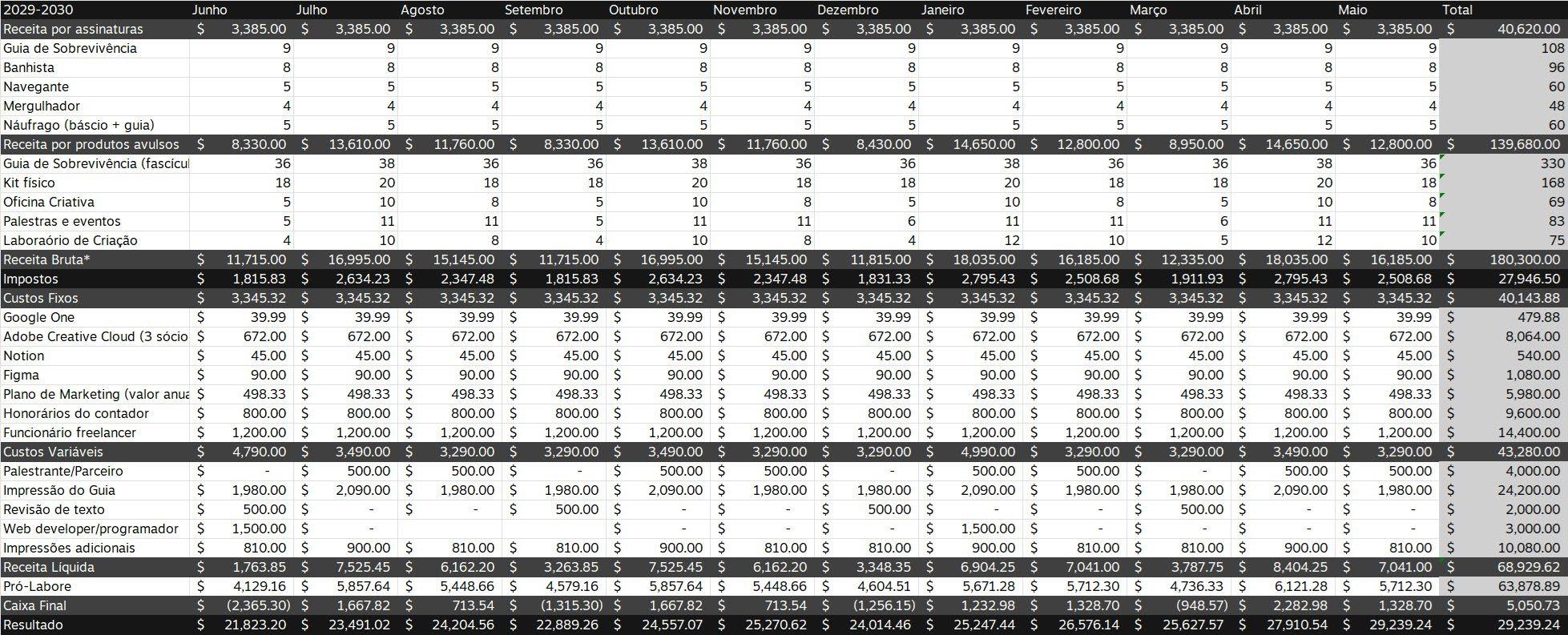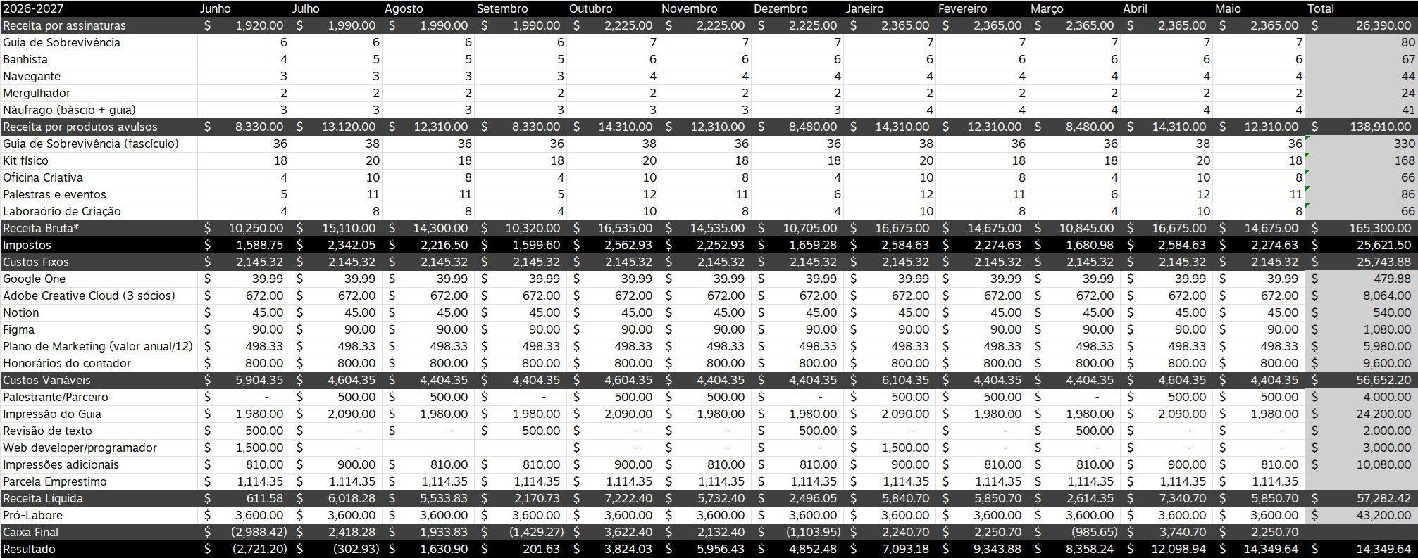 Então, depende. Por a gente ter um nome, né? E as pessoas, tipo, confiarem muito no nosso trabalho, muita gente, muitos convidados, a grande maioria a gente não paga. Convidados externos. A gente convida e eles vêm, porque é isso, pra eles é credibilidade, e visibilidade. Mas assim, lembrem que isso são 30 anos de construção de marca e de repertório. Então não é do dia pra noite que a gente constrói. Mas, como que a gente fecha a conta? Não sei se vocês conhecem sobre negócio, gestão de negócio. A gente usa muito o DRE, né? Que é, basicamente, é um controle de negócio onde você