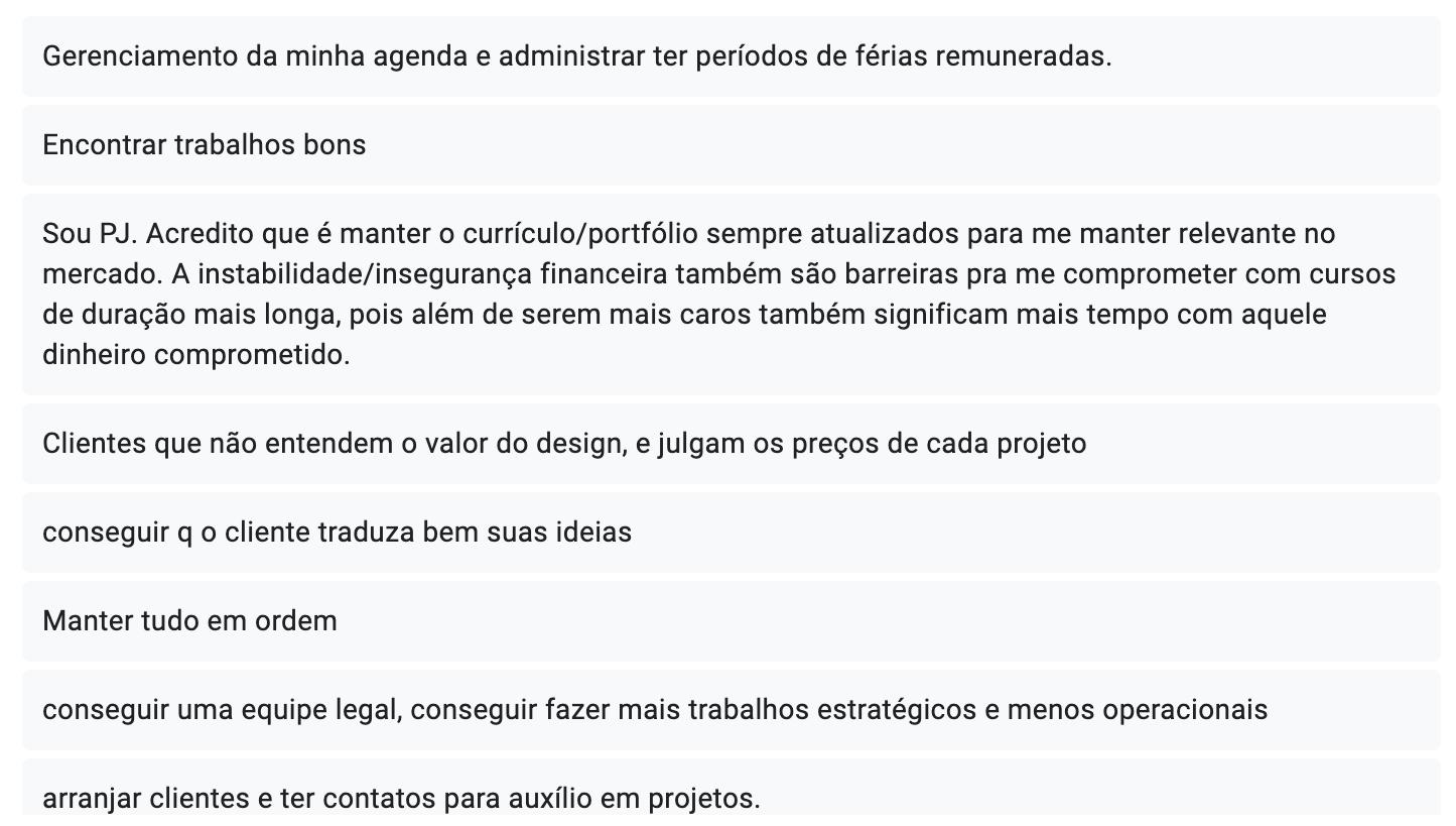 Então, eu acho que talvez a resposta que eu possa trazer é que o mercado de design precisa ser mais pluriversal. É aquela palavrinha que eu falei no outro áudio. Entender a subjetividade das pessoas, das culturas.