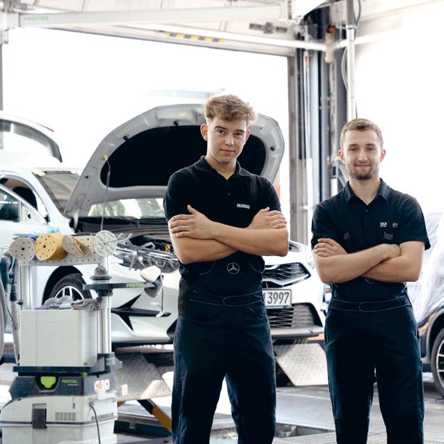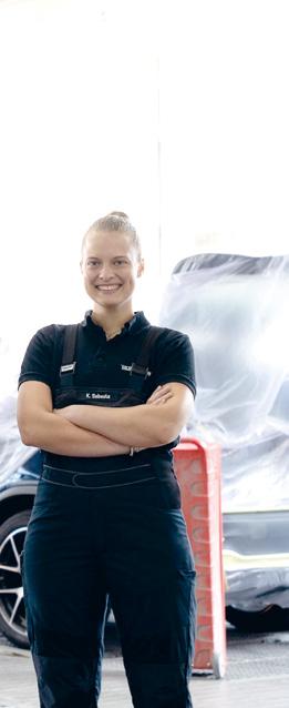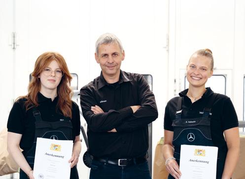 Parallel in der Lackiererei heißt es: Frauenpower mit Hochglanzfinish. Gleich doppelt. Michelle Gaida beendete ihre Ausbildung mit Auszeichnung. Katharina Sebesta überzeugte mit Bestnoten, wurde Kammersiegerin Unterfranken – und setzte noch eins drauf: Sie wurde VizeLandesmeisterin in Bayern im Fahrzeuglackiererhandwerk. Dabei vertrat Katharina die Region beim Landesentscheid in Nürnberg.