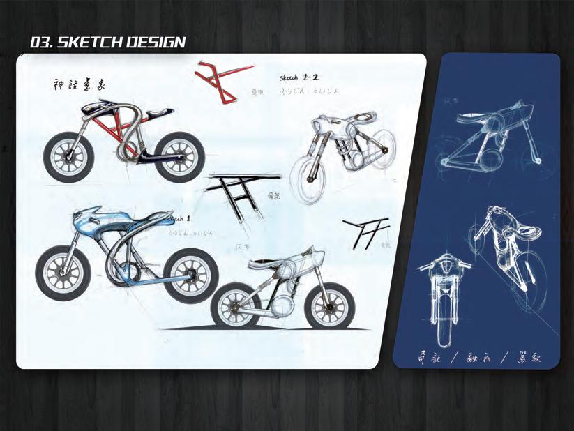 在一個燃油能源將面臨枯竭的時代,電動車 儼然成為一股能源轉換的全新趨勢。電動車 除了作為普通的代步工具外,我們的設計因 應把馭風而行的感受當作一種休閒放鬆方式 的騎士,將造型與機能合而為一,在效能上更 追求車體本身的運動能力外,也能達到騎士 對於身心靈的渴望與滿足。