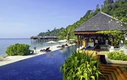 After all the excitement, we’ll zip you west to Pulau Gaya, a speedboat ride from Kota Kinabalu. This mangrove-fringed, rainforest-smothered island has just one place to stay, Gaya Island Resort, a five-star bolthole whose hillside villas seem to melt into the rampant greenery. Surrounded by a marine park, it takes an active role in conservation, from supporting turtle rescue programmes to raising awareness of the island wildlife. You can snorkel among thriving coral reefs or take a forest walk with the resident naturalist, then savour signature and crafted experiences from a traditional evening barbecue on the beach to a hands-on cooking class. If that sounds much too energetic, the menu at the secluded Spa Village includes blissinducing natural treatments based on local healing traditions.