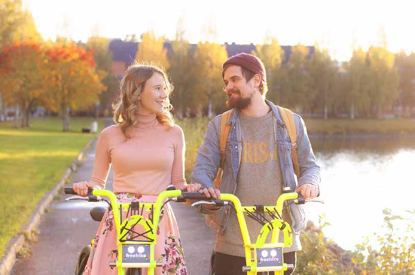 Kelpaahan sitä vilkutella, kun aurinko paistaa, linnut laulavat ja matka kaupunginosasta toiseen taittuu hikoilematta sähköisen kaupunkifillarin kyydissä. Kuopio oli ensimmäinen kaupunki Pohjoismaissa, joka otti käyttöönsä täysin sähköavusteisen, asemattoman kaupunkipyöräjärjestelmän. Tämä tarkoittaa käyttäjälle kevyitä kilometrejä, ja että sijaintinsa tunnistavat pyörät palautetaan käytön päättyessä sovelluksen ohjaamalle alueelle.