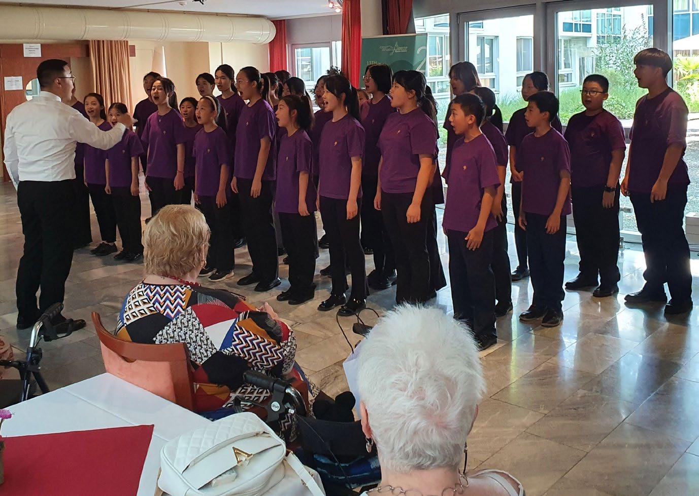 Der erste Chor, der „Chongqing BI Academy Exploratory Model Primary School Choir“, reiste aus der südwestchinesischen Metropole Chongqing an. In unserem Restaurant boten die jungen Sänger*innen eine beeindruckende Darbietung für die Bewohner*innen der Appartements und unserer Reihenhäuser. Mit ihren klaren Stimmen und traditionellen Melodien versetzten sie das