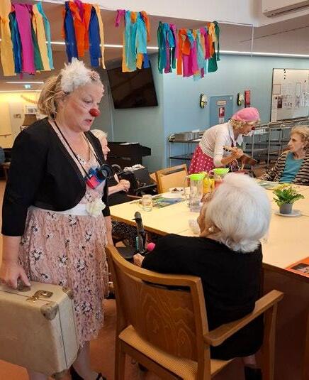Verena Vondrak hat das wunderbare Projekt MAYFLOWER ins Leben gerufen: Ein Clown-Paar „segelt“ von Zimmer zu Zimmer und hinterlässt erfrischende Mayflower-Blüten. Das hat den Bewohner*innen in den stationären Bereichen herzerwärmende Begegnungen und Momente der Freude bereitet. Dabei bedienten sich die Clowninnen der Tools wie Musik, Zauberei, Geschichtenerzählung, Slapstick