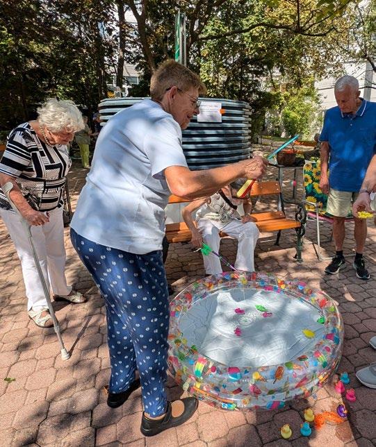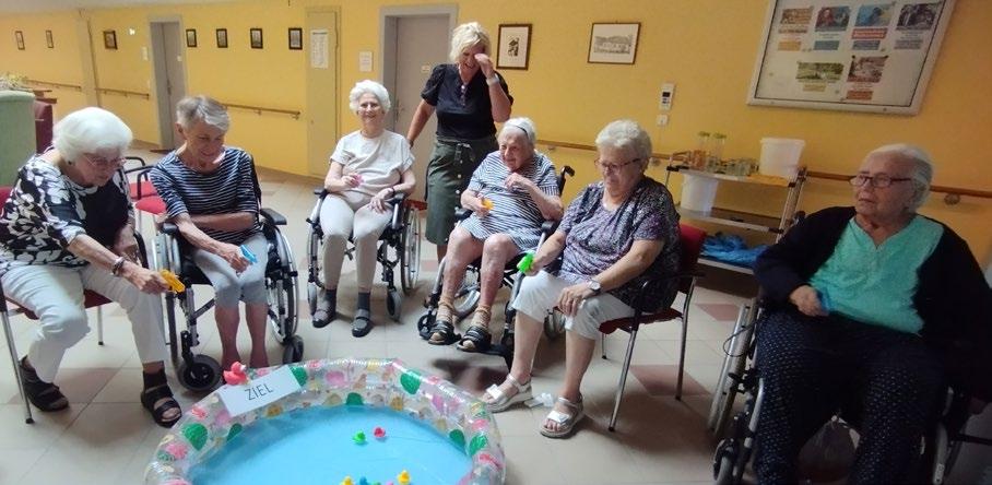an einem heißen Tag zu verschaffen und dabei ganz nebenbei die Feinmotorik zu schulen sowie das Gruppengefühl zu stärken, waren die Intentionen dieser Einheit der Seniorenanimation. Sie sehen es selbst – die Teilnehmerinnen waren begeistert und möchten eine Wiederholung, damit es wieder heißt: „Auf die Plätze, Ente, los!“