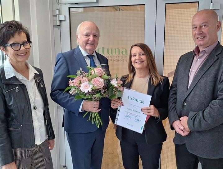Am 01. Oktober 2024 feierte Sylvia Schuster, Assistentin des Vorstandes und der Geschäftsführung, im Kuratorium Fortuna ihr 20-jähriges Dienstjubiläum. Der Präsident des Kuratorium Fortuna, Herr Godwin Schuster, Herr Vizepräsident Klaus Pecha und Geschäftsführerin Mag. Judith Hackl ließen es sich nicht nehmen, Frau Schuster persönlich für ihre jahrzehntelange Treue zu unserem Verein zu danken und ihr einen wohlverdienten Einkaufsgutschein, einen Blumengruß sowie ihre Jubiläumsurkunde zu überreichen. Wir gratulieren Frau Schuster sehr herzlich zu diesem schönen Jubiläum und hoffen, dass Sie noch viele, möglichst schöne Berufsjahre bei Fortuna verbringen kann und wird.