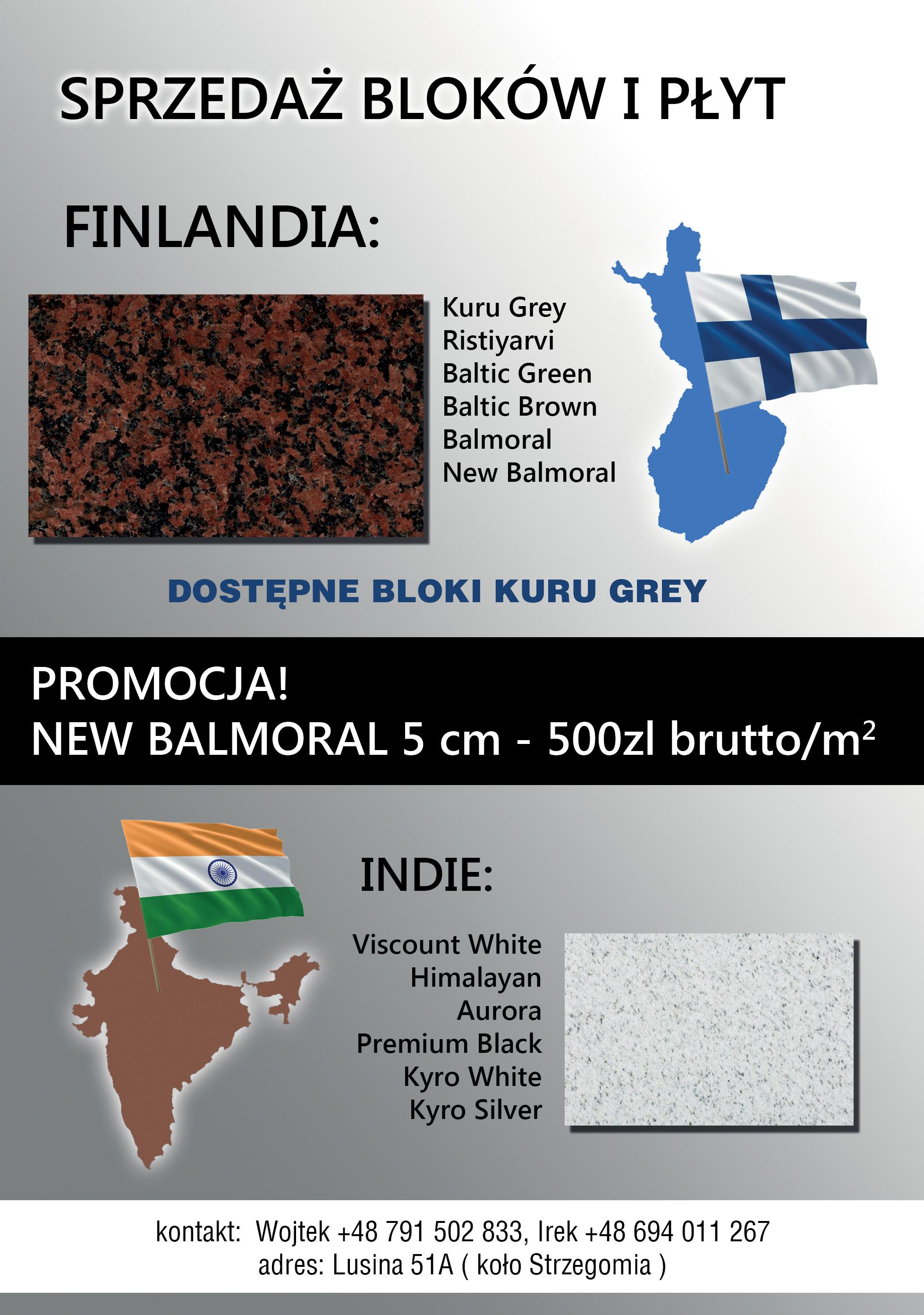 Oferuję bloki, płyty, nagrobki, kostkę i inne wyroby z ukraińskich kamieni. Atrakcyjne ceny. Pomogę w pozyskaniu do pracy profesjonalnych kamieniarzy z Indii, Pakistanu i innych krajów. Gran-Pol Stanisław Chomiuk, Derewiczna 3, 21-311 Komarówka Podlaska, e-mail:gran-pol@wp.pl, tel. 600 899 102