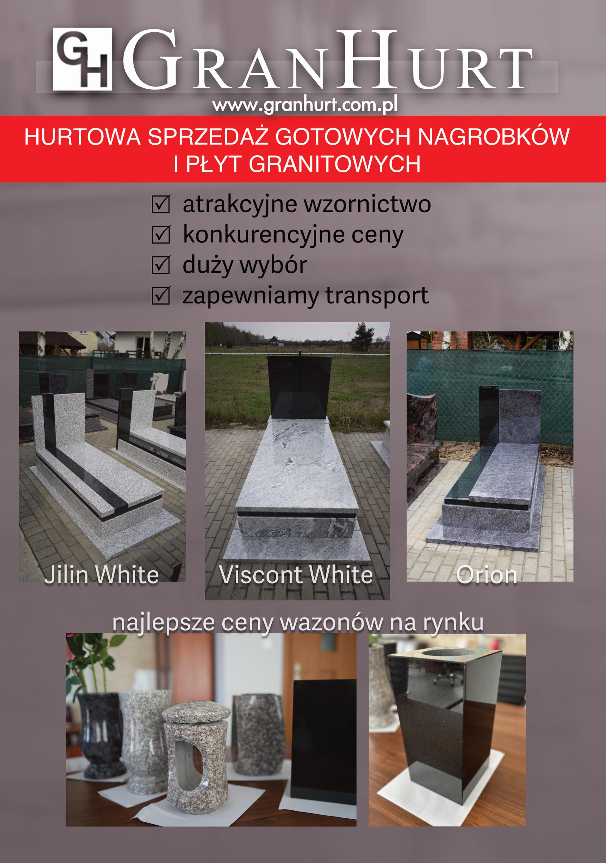 www.hermes-trade.pl Gdynia, ul. Legionów 87 Magazyn: Szemud, ul. Wejherowska 79 www.hermes-trade.pl tel. 606 64 42 67 tel. 517 24 62 93 gdynia@hermes-trade.pl Z A M ÓW I E N I A KO N T E N E R OW E – Z A P E W N I A M Y KO M P L E K S OWĄ O B S Ł U G Ę O D A D O Z • N A G R O B K I • • T A B L I C E N A P I S O W E • PŁYTY GRANITOWE KONGLOMERATY P r o m o c j a A s t o r i a 3 c m p o l e r/p ł o m i e ń 3 9 0 z ł b r u t t o HURTOWNIA NAGROBKÓW • B R Ą Z K R Ó L E W S K I • O R I O N • I M PA L A P Ó Ł N O C Y • i i n n e N o w e o s t a w y u ż w m a j u
