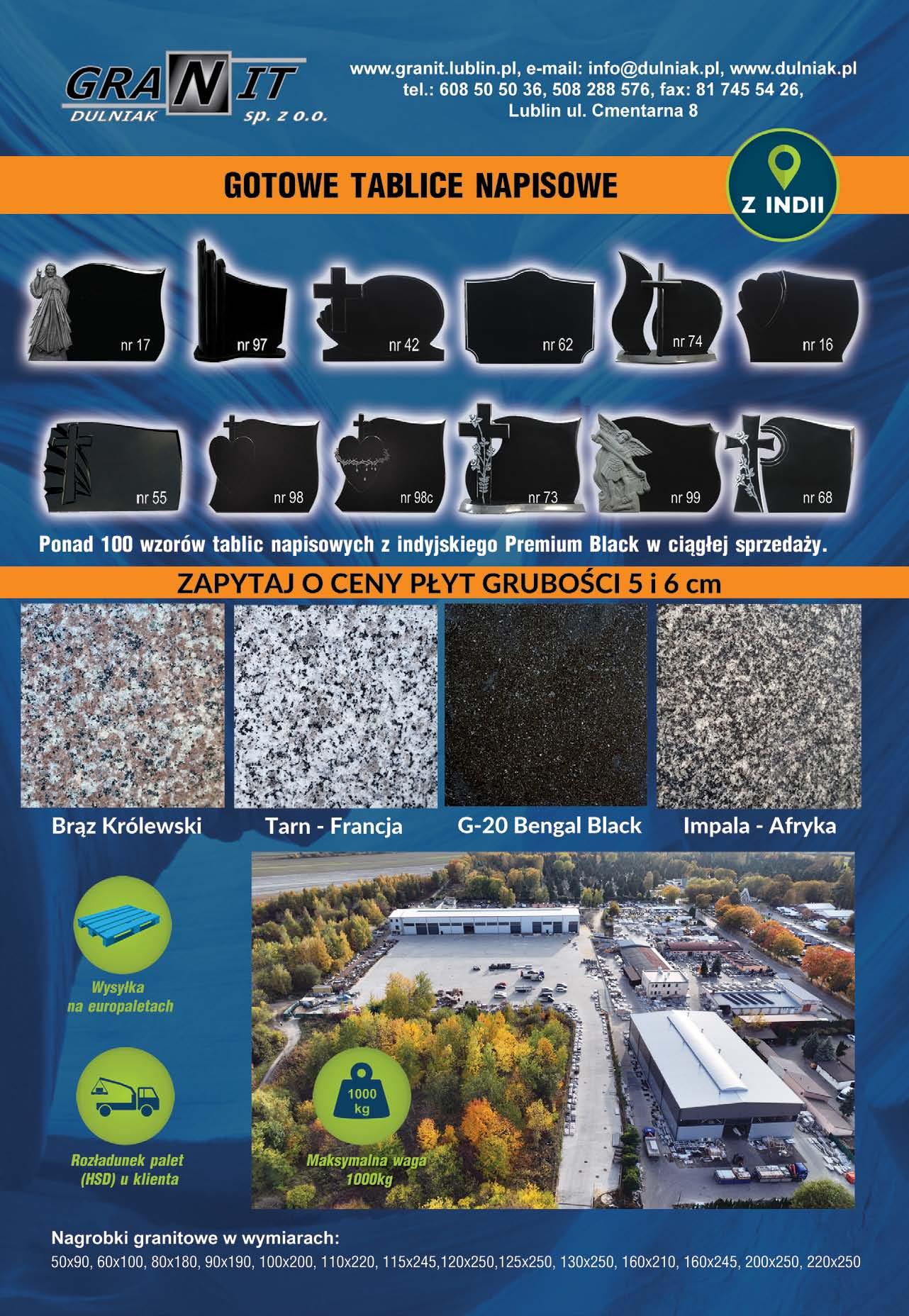 Natomiast na nagrobku, w polerze, prezentuje się bardzo szlachetnie. Ma taką ciekawą żyłkę i drobne refleksy srebra i platyny, które w słońcu dają zaskakujące efekty. Wykonaliśmy z niego też okładki pomnika. Wyglądają bardzo ciekawie, a ze względu na cenę mogą zyskać dużą popularność jako zamiennik dla betonowej kostki.