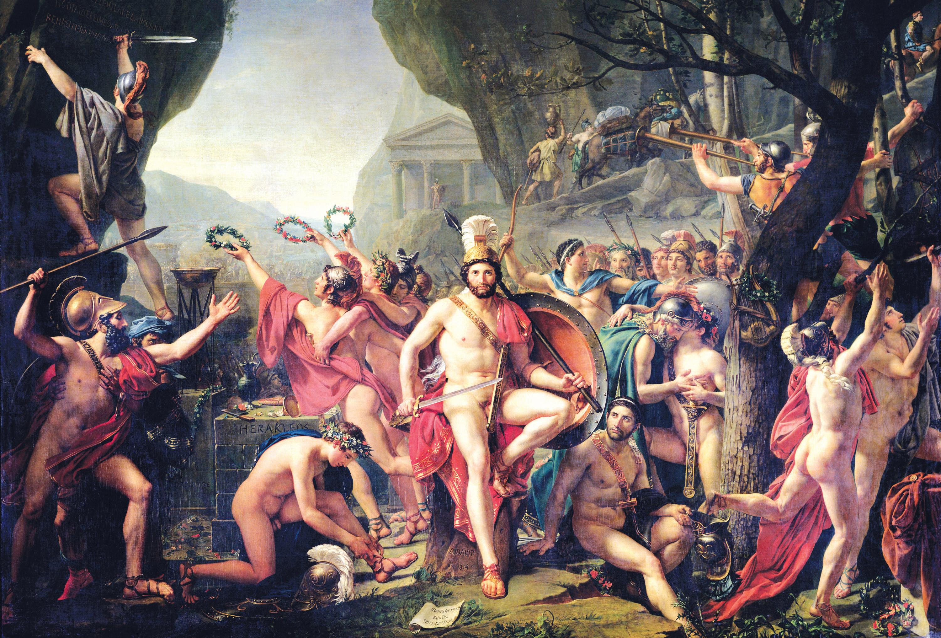 Zanim o przebiegu bitwy, zwróæmy uwagê na obraz jednego z najs³ynniejszych akademickich malarzy Francji, Jacques-Louisa Davida „Leonidas pod Termopilami”. Jakby odnosi³ siê do ostatniego zdania z Herodota, wy¿ej cytowanego. Nie jest to przecie¿ przedstawienie samej bitwy pod Termopilami, jakiejœ jednej z jej faz, ale apoteoza wodza Spartan. W stylu… no, powiedzmy, doœæ kiczowatym, ale widaæ przed wiekami taka kompozycja uchodzi³a za jak najbardziej w³aœciw¹.