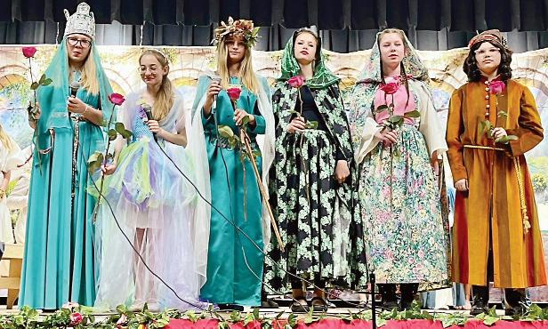 Tañce Œl¹skie. Nauczycielki Zespo³u z Emili¹ /Duszek Fotelu/ i Hani¹ /Dwórka/ Idec. Pan Twardowski z ¿on¹ i diab³em. ZDJÊCIA: M. BIELSKA, Z BIELSKI, A. IDEC, B. KULPA Ksi¹¿ê Mieszko I pasuje uczennicê na Rycerza Chrzeœcijañstwa. Smok Wawelski po¿era owieczkê.