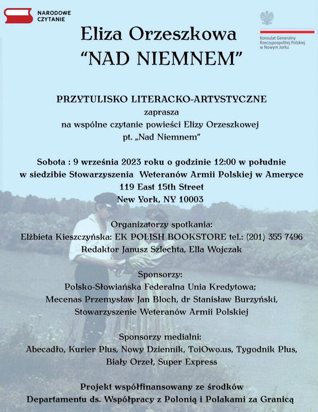 Przytulisko Literacko-Artystyczne wraz z Konsulatem Generalnym Rzeczypospolitej Polskiej w Nowym Jorku serdecznie zapraszaj¹ mi³oœników literatury na Narodowe Czytanie 2023.