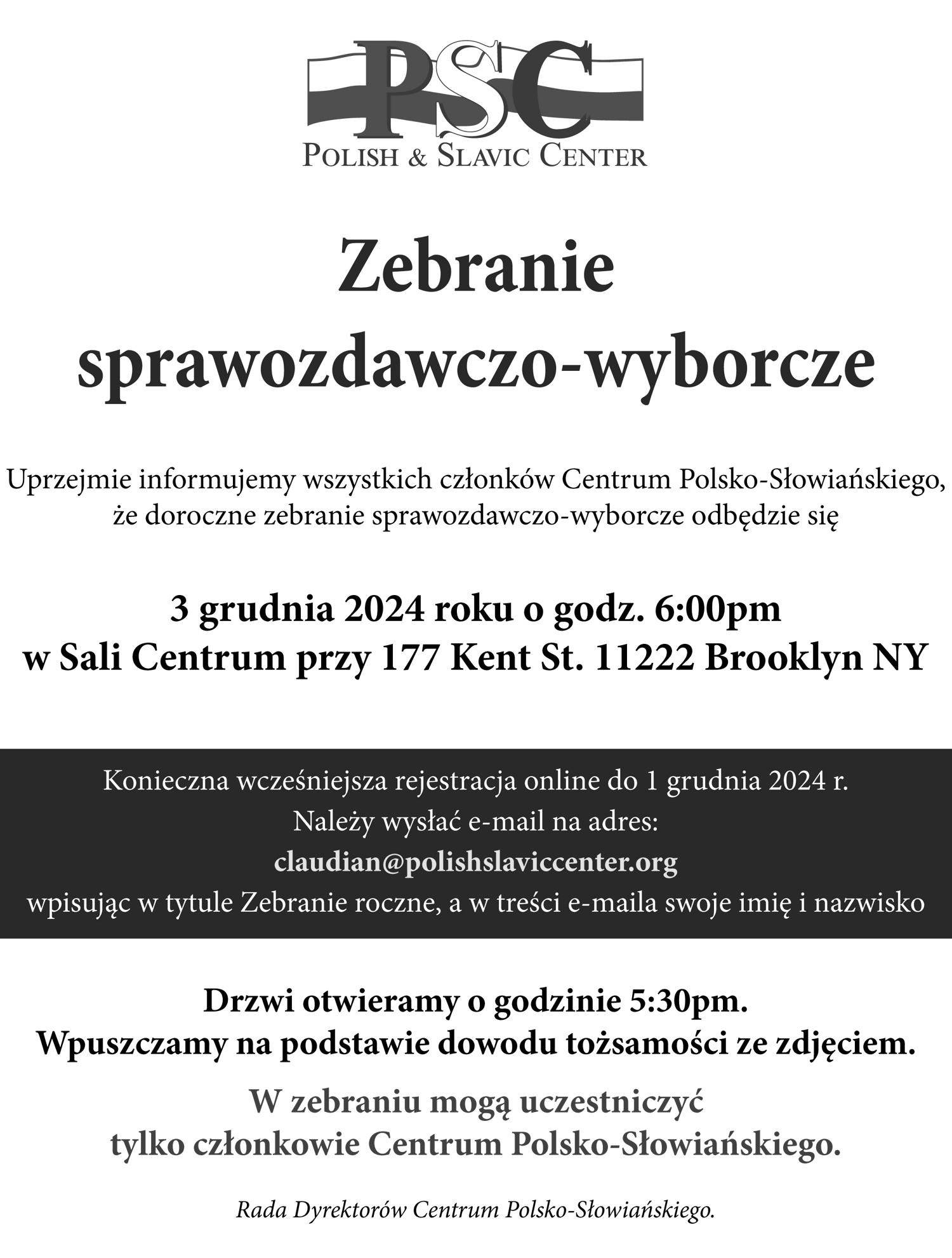Spotkanie odbêdzie siê 7 listopada o godzinie 18-ej li nr 8 w siedzibie Centrum Polsko-S³owiañskiego przy Java Street na Greenpoincie.