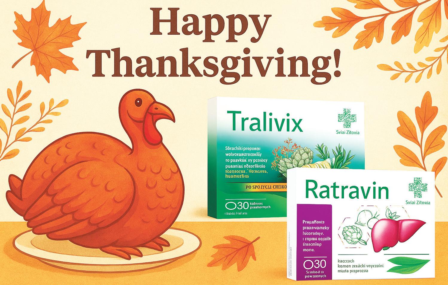 Drugim suplementem, który warto mieæ pod rêk¹, jest Tralivix, równie¿ z serii Œwiat Zdrowia. To preparat, który skupia siê na tym, co wspó³czesna medycyna uznaje za klucz do zdrowia – mikrobiocie jelitowej. Zawarte w Tralivixie probiotyki odbudowuj¹ florê jelit po obfitym posi³ku, b³onnik usprawnia perystaltykê, a delikatne roœlinne ekstrakty przywracaj¹ naturaln¹ równowagê. Tralivix dzia³a jak spokojny, rozs¹dny przewodnik, który mówi uk³adowi pokarmowemu: „Tak, by³a uczta. Tak, by³o du¿o. Ale wracamy do normalnoœci i harmonii.” Thanksgiving to czas radoœci, rodzinnych spotkañ i rzadko wyra¿anej na codzieñ wdziêcznoœci. A Markowa Apteka jest po to, aby zadbaæ, by po piêknym, obfitym w smako³yki œwiêtowaniu wróciæ do zdrowia lekko, spokojnie i z uœmiechem. Niech wiêc na Pañstwa sto³ach zagoœci tradycyjna obfitoœæ, w sercach wdziêcznoœæ, a w jelitach – harmonia. Weso³ego, zdrowego i smacznego Thanksgiving!