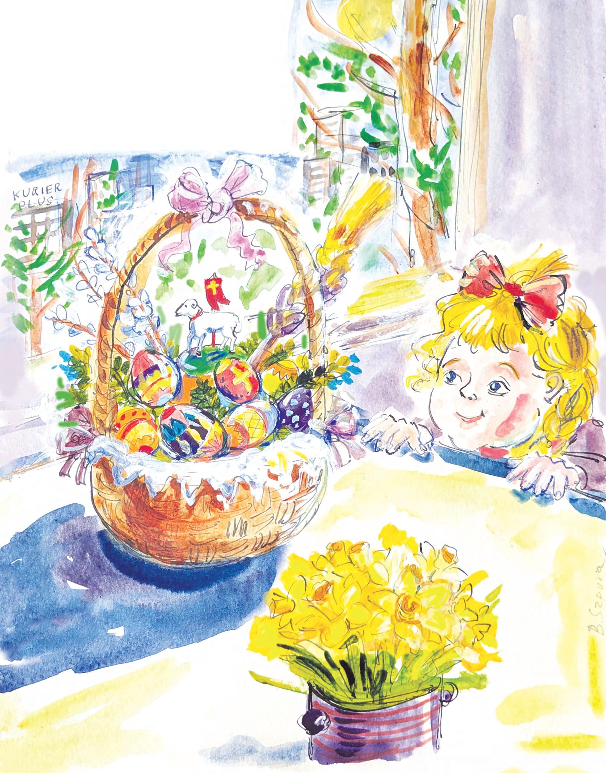 moœæ, ¿e grób Jezusa jest pusty. Widzê j¹, jak bierze chustê w rêce, przytula j¹ do serca i zaczyna tañczyæ, œpiewaæ, radowaæ siê. Ten obraz pomaga mi zrozumieæ, jak i ja mogê prze¿ywaæ radoœæ Zmartwychwstania – przyobleczony duchowo w szatê otrzyman¹ podczas sakramentu chrztu œwiêtego, naznaczon¹ mi³oœci¹ Boga. ¯yczê sobie iCzytelnikom „Kuriera Plus”, aby ka¿dy krok naszego ¿ycia stawa³ siê tañcem zaufania, a œpiew – wyznaniem wiary, ¿e Jezus naprawdê ¿yje.