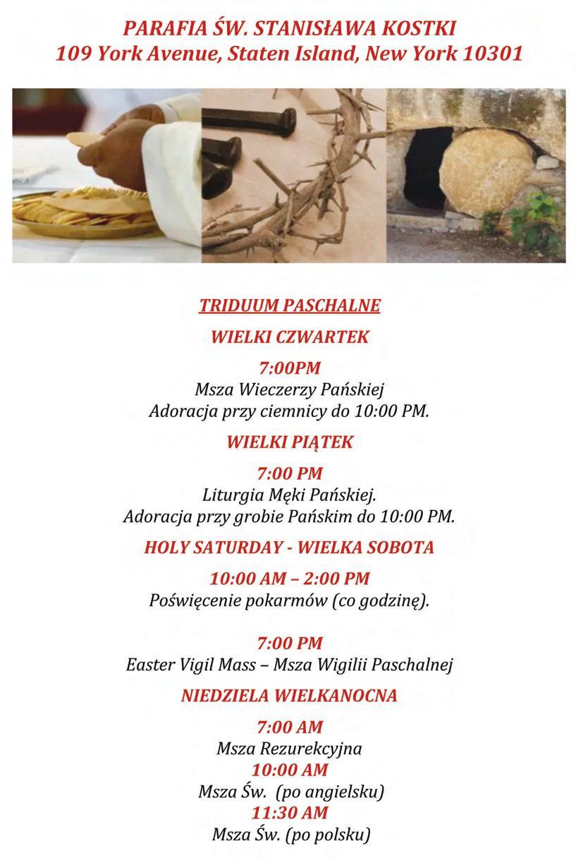 Obrzêdowi przewodniczyæ bêdzie arcybiskup Nowego Jorku Ronald Hicks. Serdecznie zapraszamy wszystkich parafian i goœci do wspólnego prze¿ycia tej piêknej, wielkanocnej tradycji.