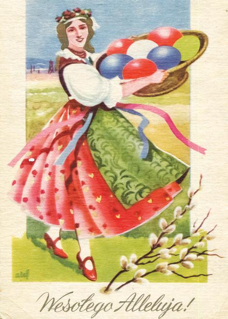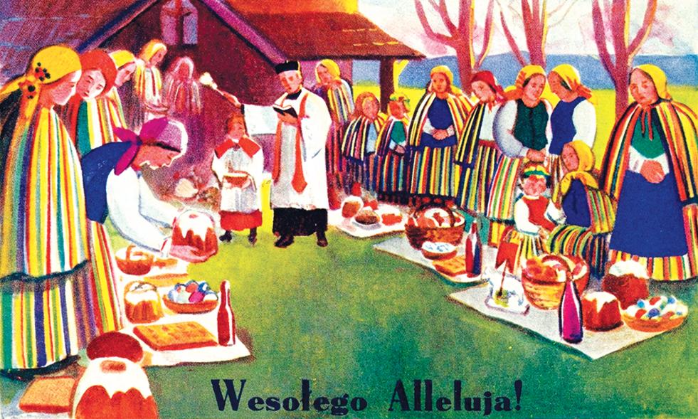 A gdy rankiem przysz³o dobudzenia, to nie by³o tak ³atwo wygrzebaæ siê z ciep³ego ³ó¿ka. Mama lekko potrz¹sa³a nami mówi¹c, ¿e czas ju¿ wstawaæ. A gdy to nie skutkowa³o to œci¹ga³a z nas pierzynê lub polewa³a wod¹. Po porannym obmyciu twarzy i ubraniu siê ruszaliœmy do koœcio³a. Droga liczy³a oko³o czterech kilometrów. Wêdrowaliœmy polami, lasami i ³¹kami. Z ca³ej okolicy wszyscy zd¹¿ali w jednym kierunku. Poranne zorze malowa³y niebo na wschodzie, budz¹c ze snu skowronka, wiosennego œpiewaka. Unosi³ siê wysoko nad zieleniej¹cymi polami i dŸwiêcznym g³osem towarzyszy³ nam w radosnej drodze. Wkoœciele œpiew kap³ana: „Chrystus zmartwychwsta³!” otwiera³ bramy innego œwiata. Dope³nieniem by³a procesja, a póŸniej œniadanie wielkanocne.