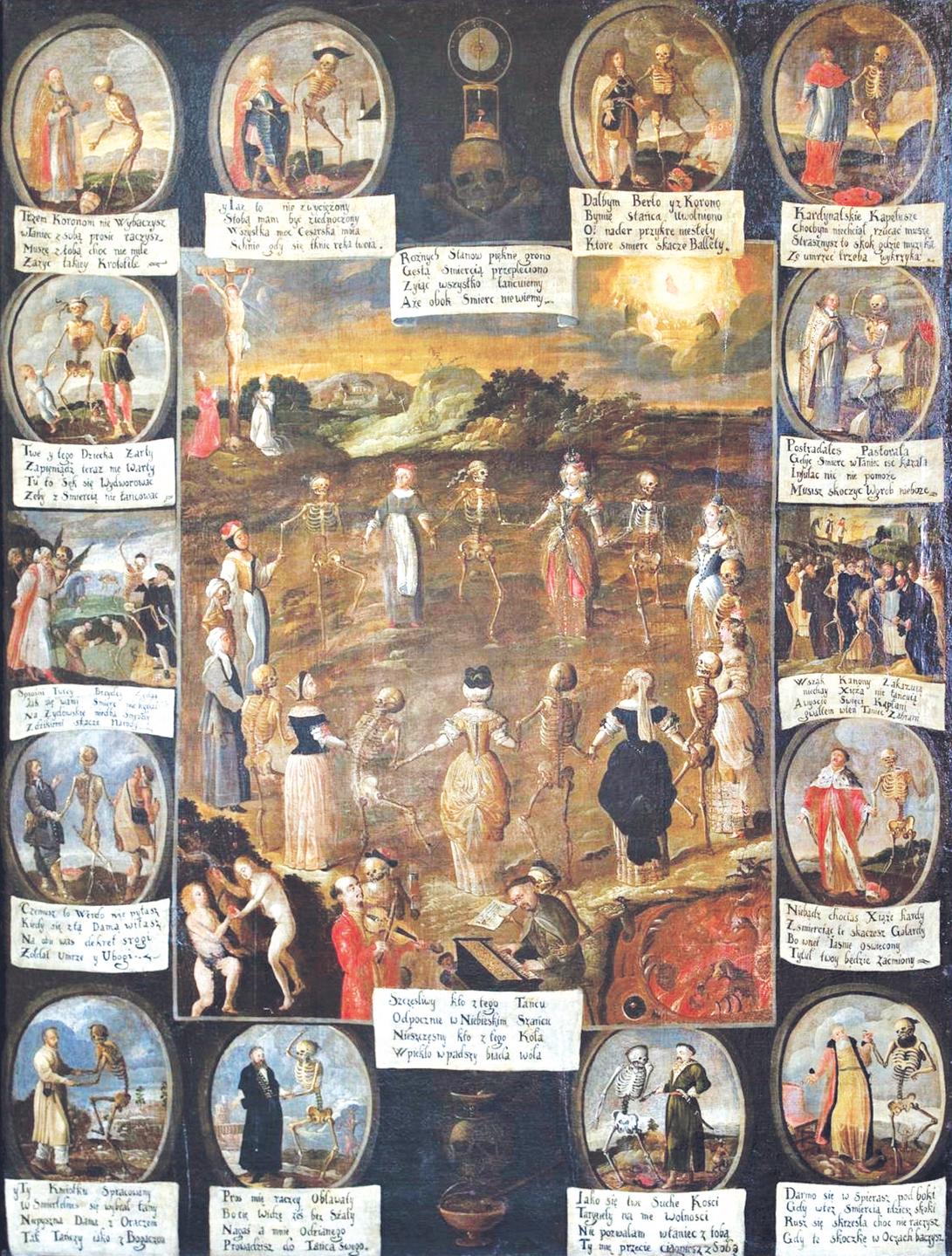 Franciszek Lekszycki (1600-1668) – zakonnik i utalentowany malarz zostawi³ w koœciele bernardynów w Krakowie obraz na omawiany w³aœnie temat. Sporych rozmiarów p³ótno (2,5 m x 2,10) sk³ada siê z 14 ma³ych obrazków i centralnego wizerunku obrazuj¹cego kobiety ró¿nego wieku i statusu spo³ecznego w kole tanecznym ze œmierci¹. Do ich pl¹sów przygrywaj¹ sarmaccy z wygl¹du muzycy nadzorowani przez szkielety. Nauka moralna w formie czterowiersza powiada: