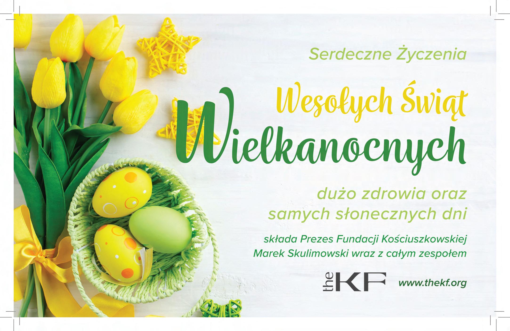 Z okazji Œwi¹t Wielkanocnych ¿yczê zdrowia, spokoju oraz radoœci p³yn¹cej z budz¹cej siê do ¿ycia wiosny. Niech ten wyj¹tkowy czas nape³ni serca nadziej¹ i przyniesie wiele pomyœlnoœci w Pañstwa ¿yciu osobistym i zawodowym.
